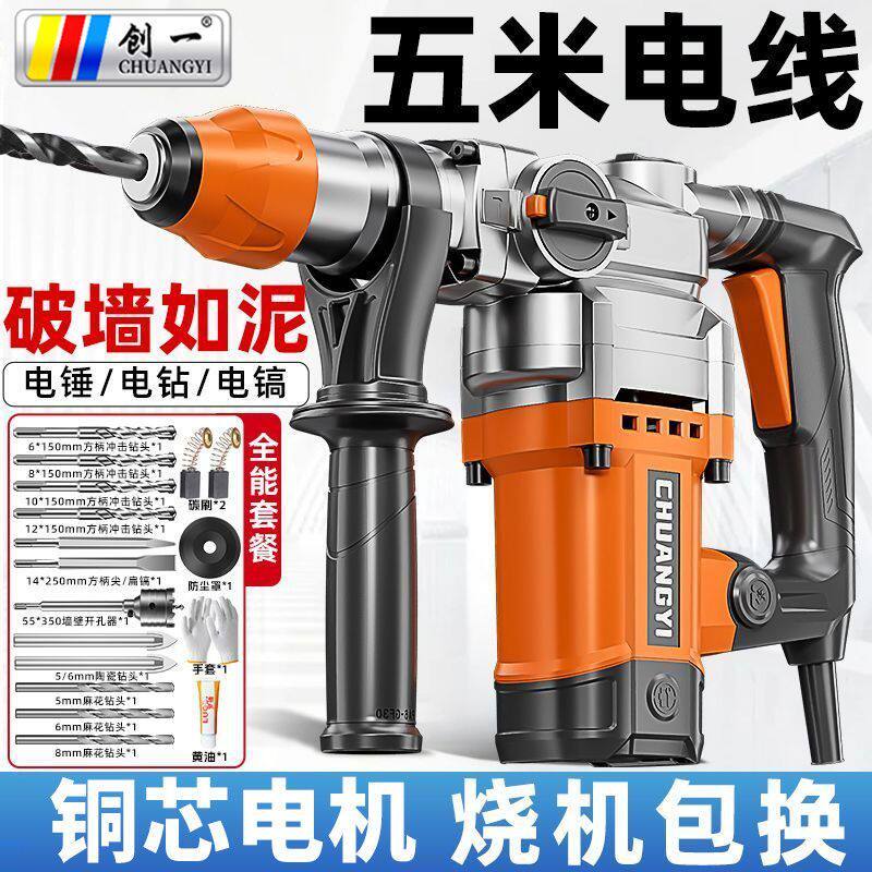 创一电锤电镐大功率冲击钻工业级混凝土打孔家用多功能电动工具