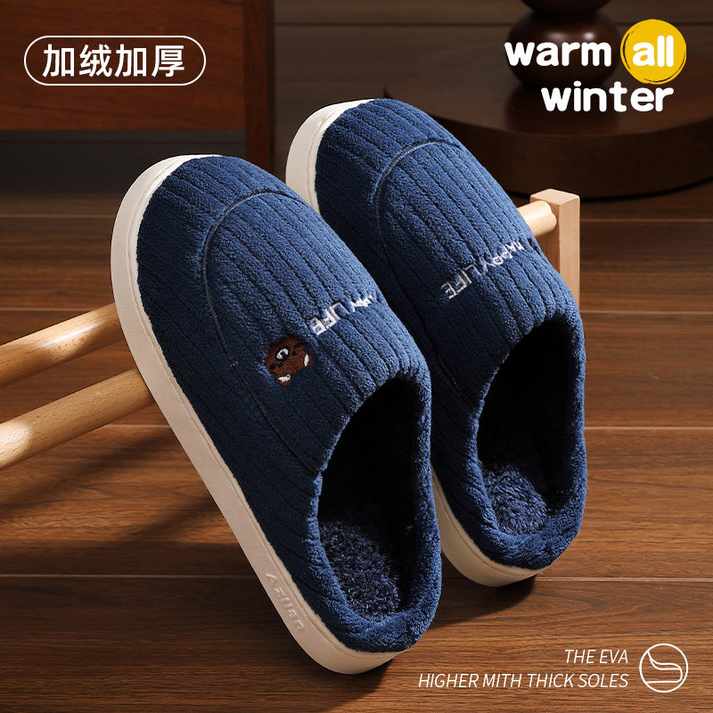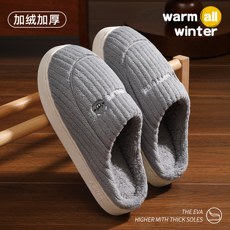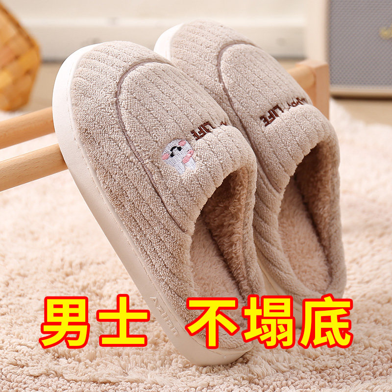 朴西棉拖鞋女士秋冬季厚底简约保暖室内居家用软底防滑情侣棉拖男