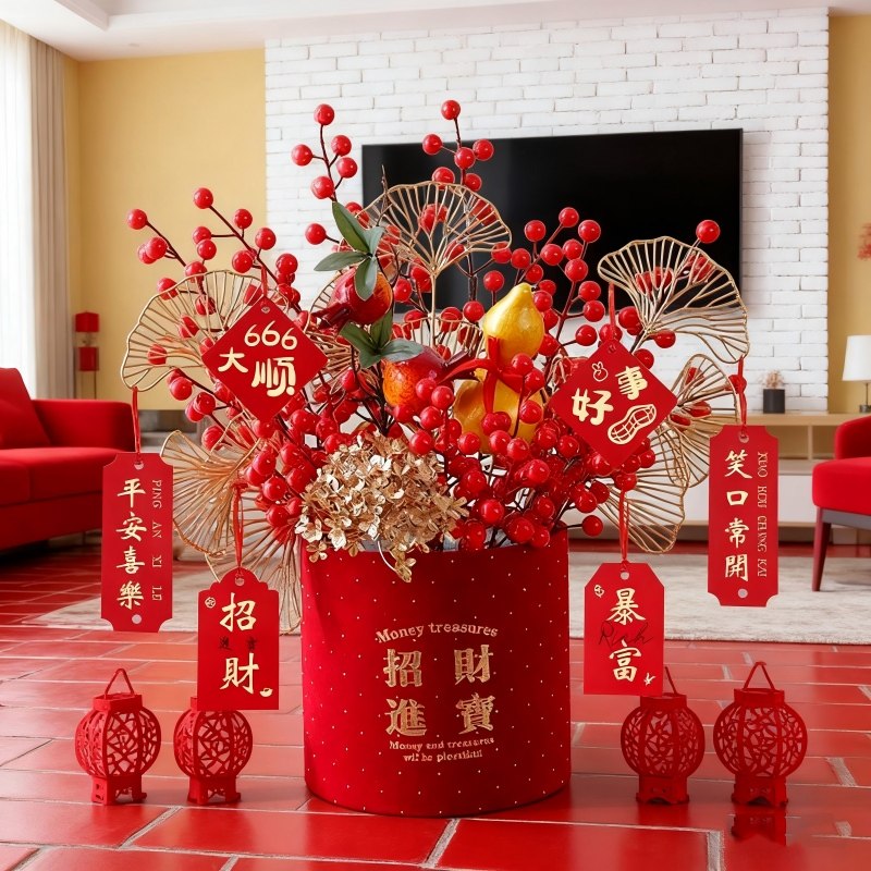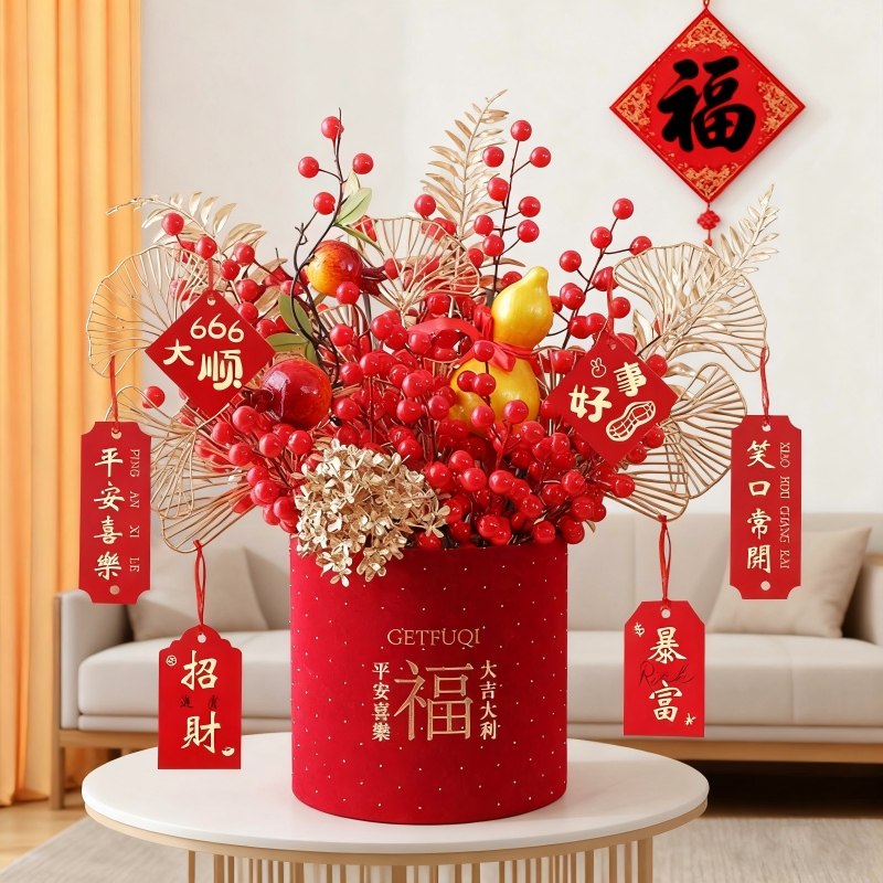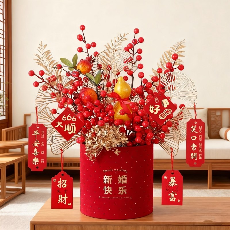乔迁之喜装饰摆件新居布置入宅用品福桶客厅仿真花结婚氛围婚礼