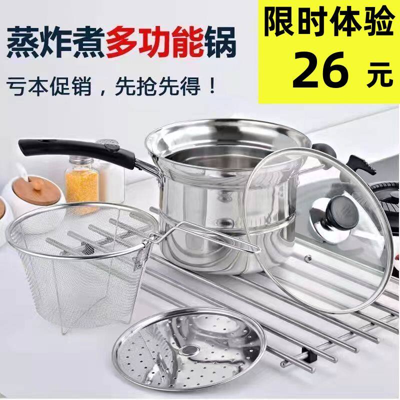 不锈钢多功能油炸锅加厚奶锅汤锅蒸锅小炸锅家用蒸煮电磁炉通用锅