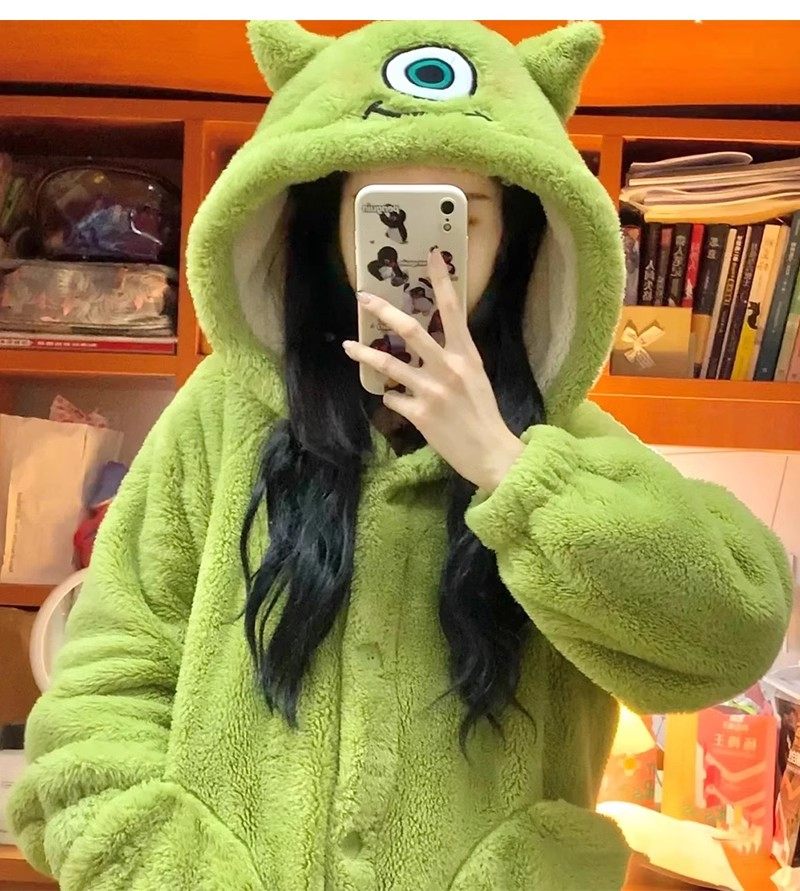 大眼仔珊瑚绒睡衣睡袍女2024新款秋冬季加厚保暖长款睡裙卡通浴袍
