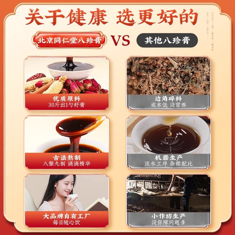 北京同仁堂阿胶人参八珍膏女士益母气血双补膏滋正品官方旗舰店