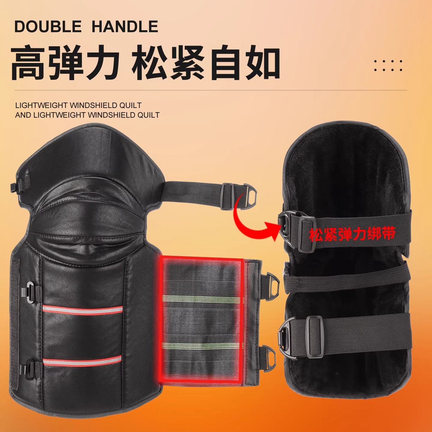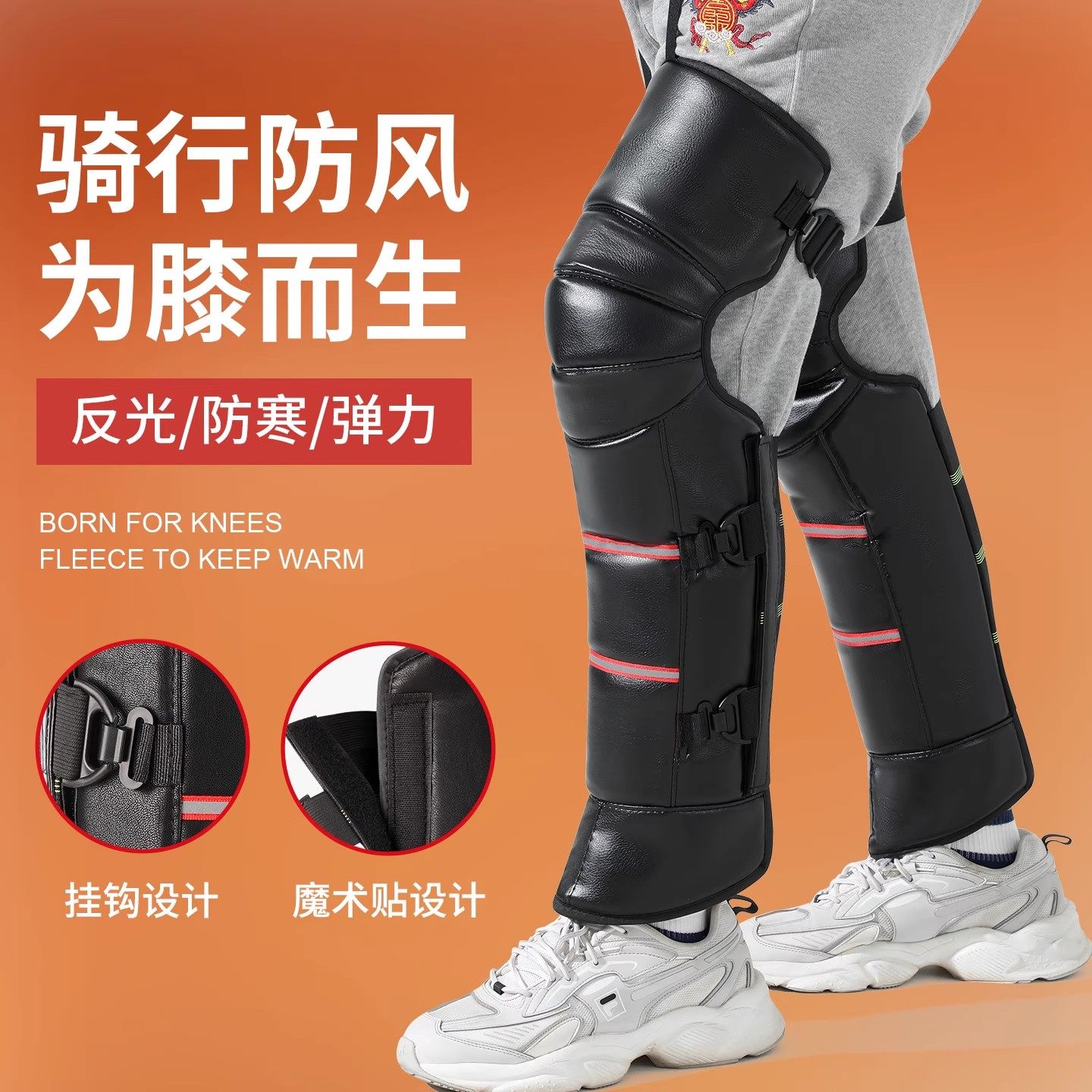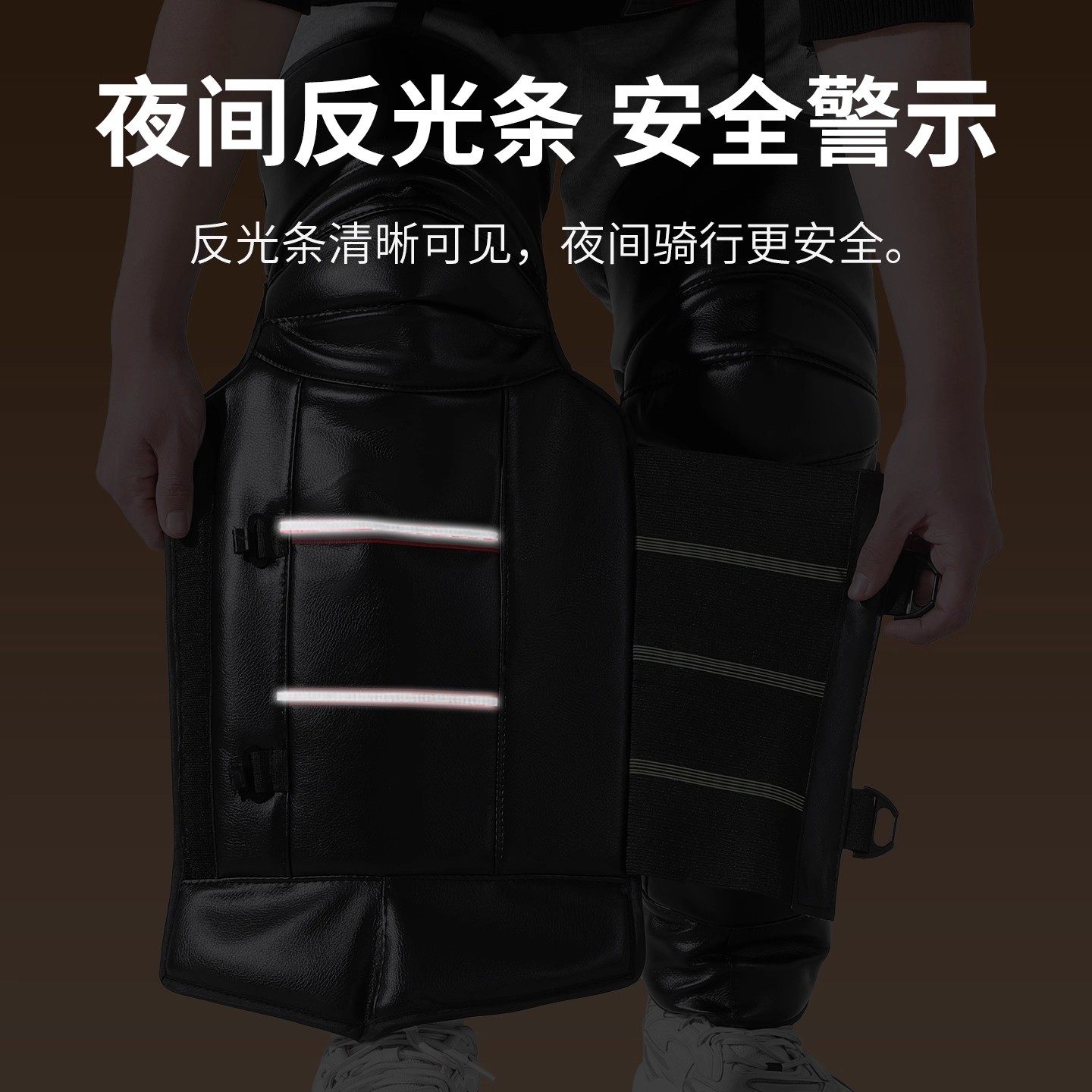 电动车护膝加绒加厚PU皮冬季保暖防风外卖骑手专用护腿防寒防泼水