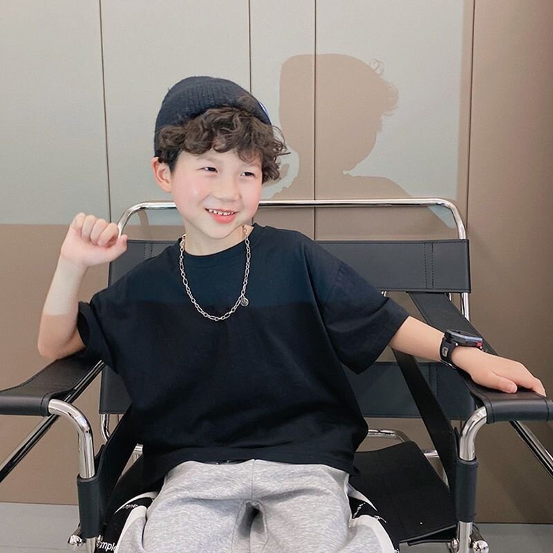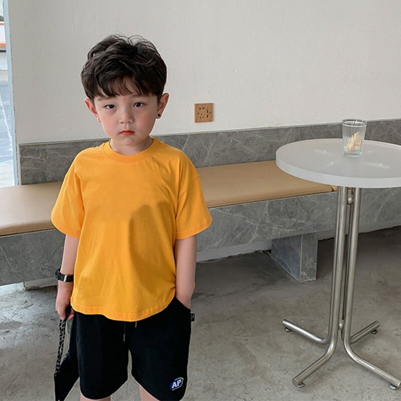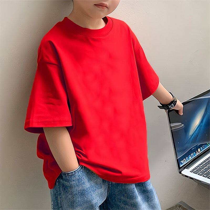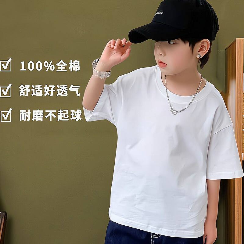 夏季中大儿童纯色纯棉短T男童纯白t恤班服小学生短袖体恤宽松透气