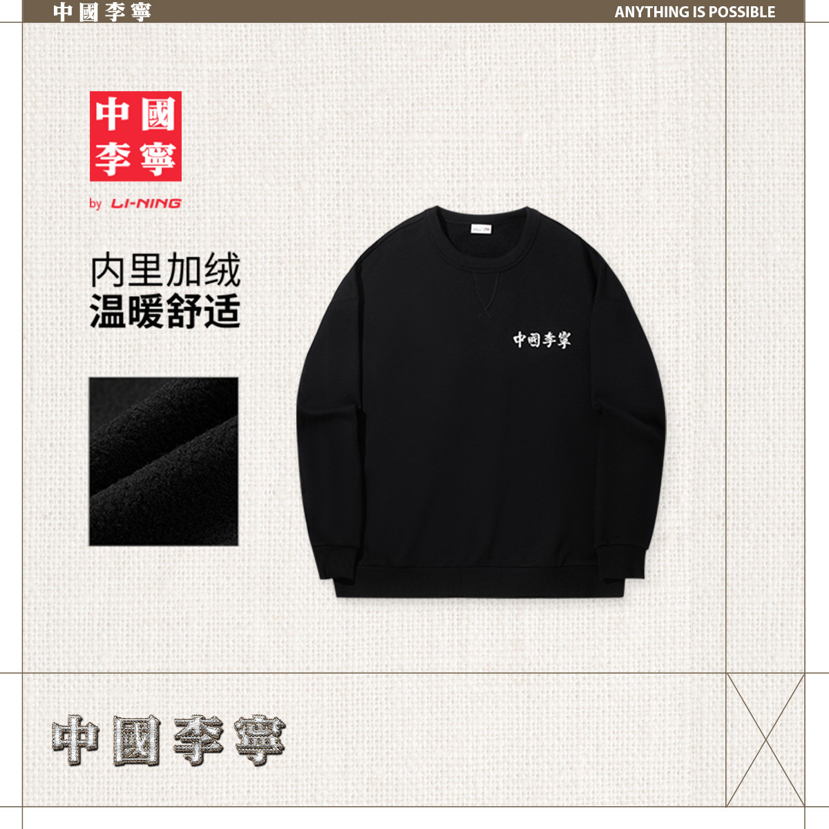 中国李宁卫衣男士女士2025新款情侣加绒上衣加厚保暖宽松运动服