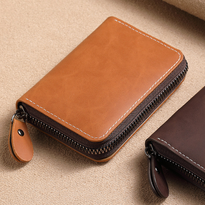 稻草人卡包女士新款证件女式牛皮小巧真皮拉链钱夹小众银行卡钱包