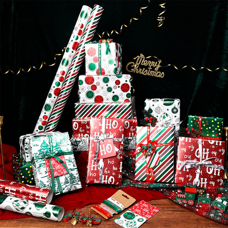 圣诞包装纸超大张复古红绿礼品盒打包纸平安夜装饰材料礼物包装纸