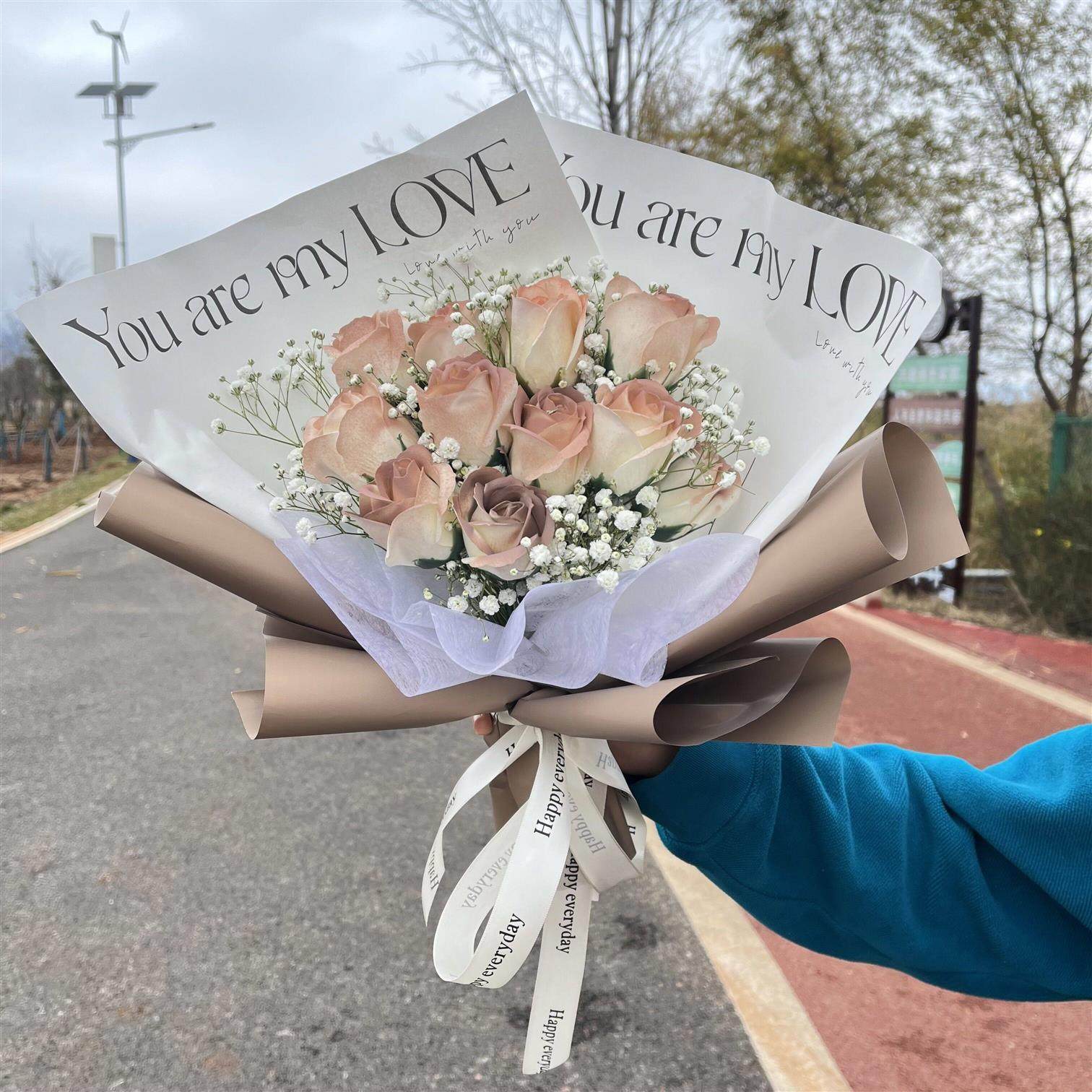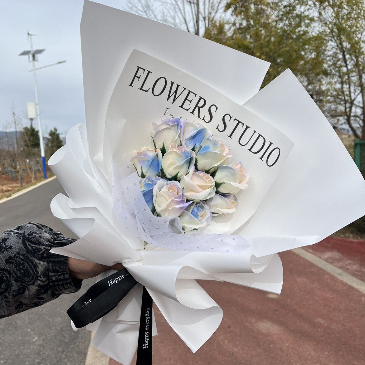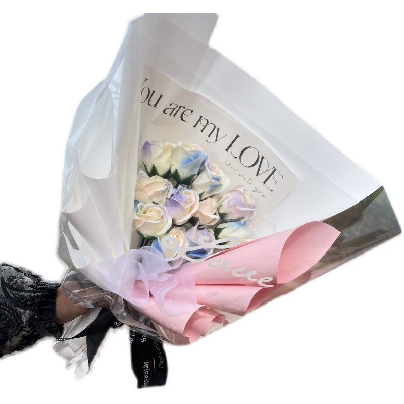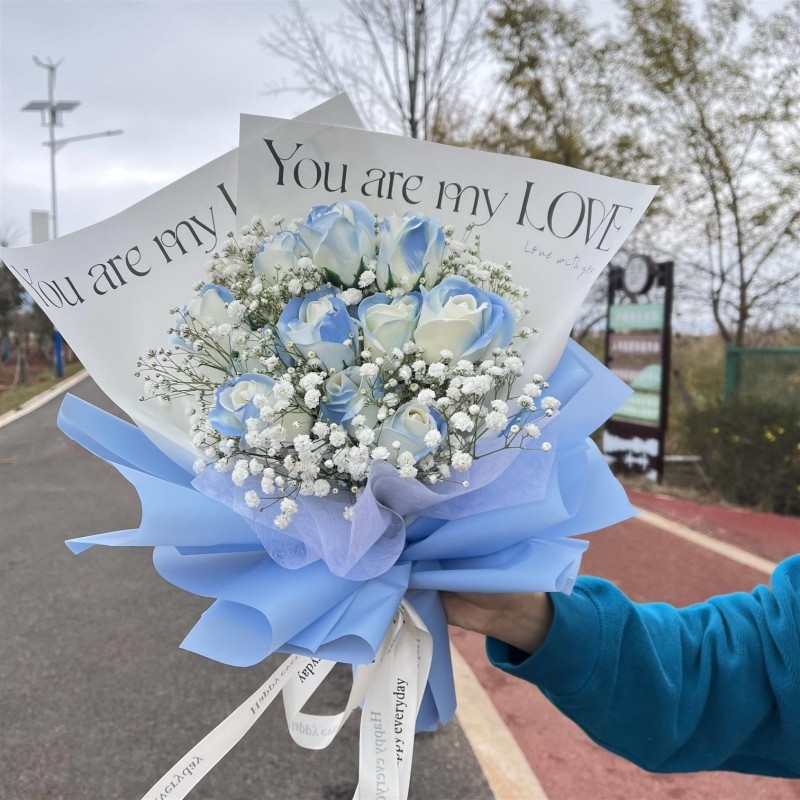 成品碎冰蓝玫瑰花束黑骑士送男友情人节礼物真香皂花永生干花束