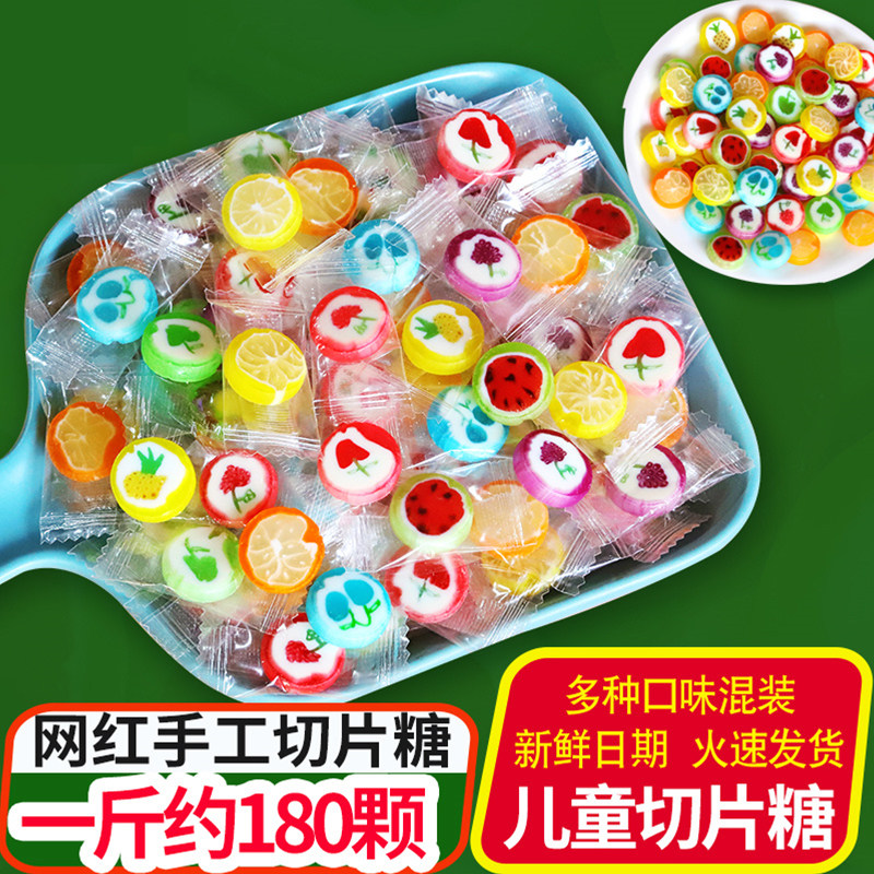 圣诞节儿童糖果手工混合水果味切片糖批发零食硬棒棒糖水果糖好吃