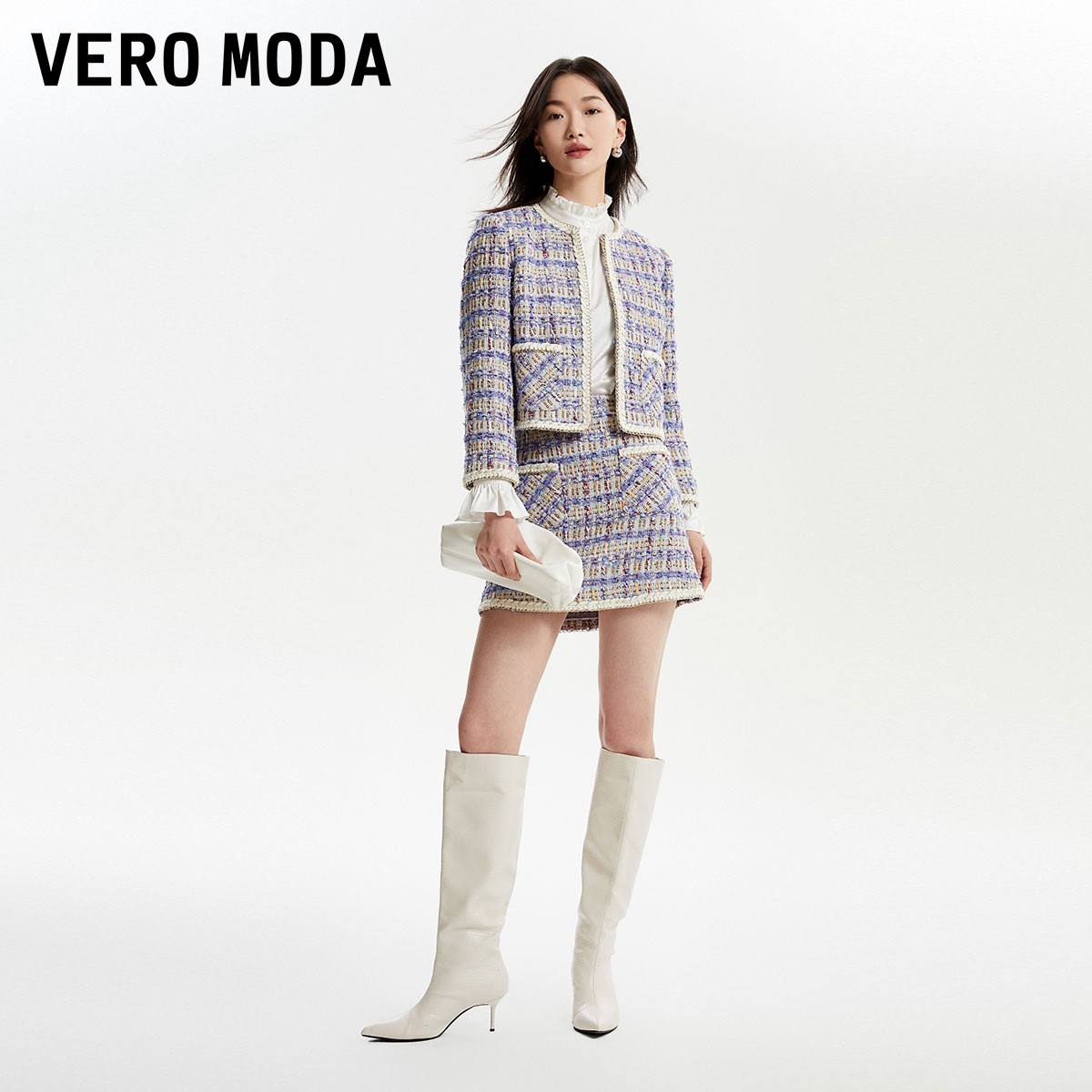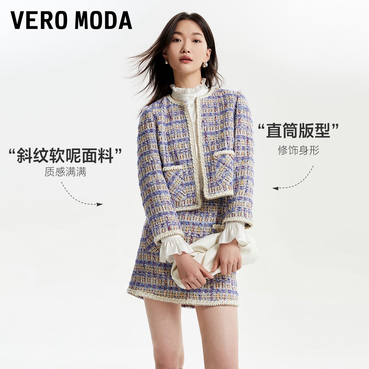Vero Moda奥莱外套女秋季新款直筒圆领短款小香风优雅开衫大衣