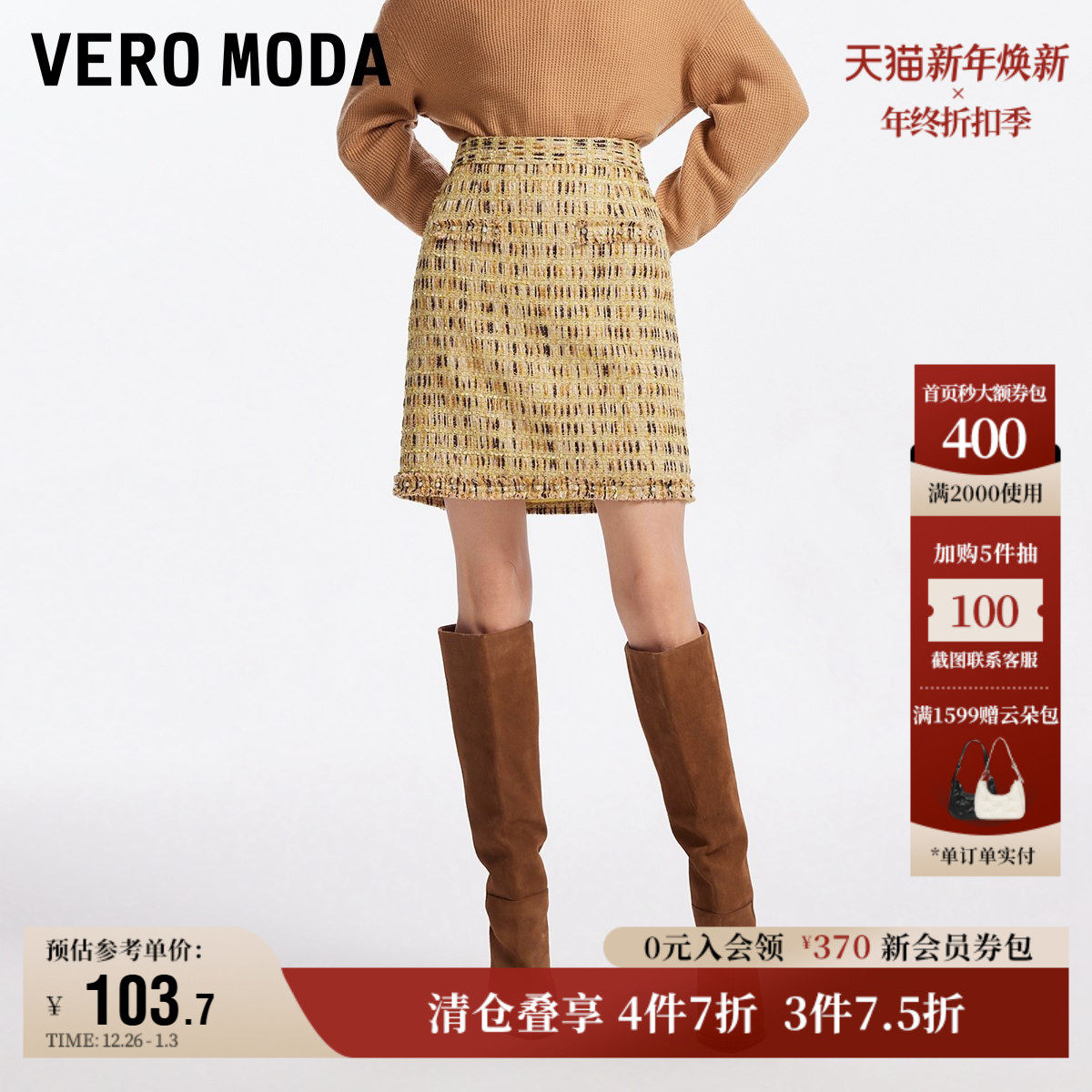 Vero Moda奥莱半身裙秋冬清仓高腰优雅气质小香风粗花呢短裙女