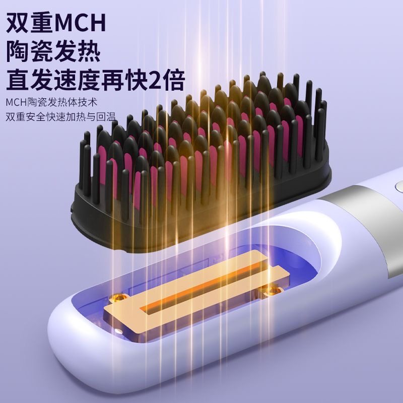 无线直发梳负离子不伤发蓬松高颅顶神器直卷两用夹板卷发棒电梳子