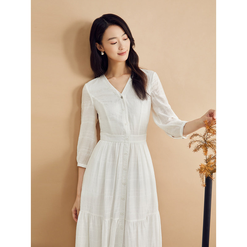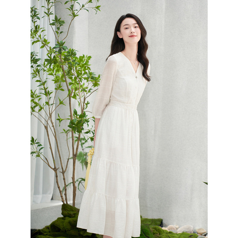 【天丝系列】YINER音儿专选秋季莱赛尔白色仙女裙连衣裙