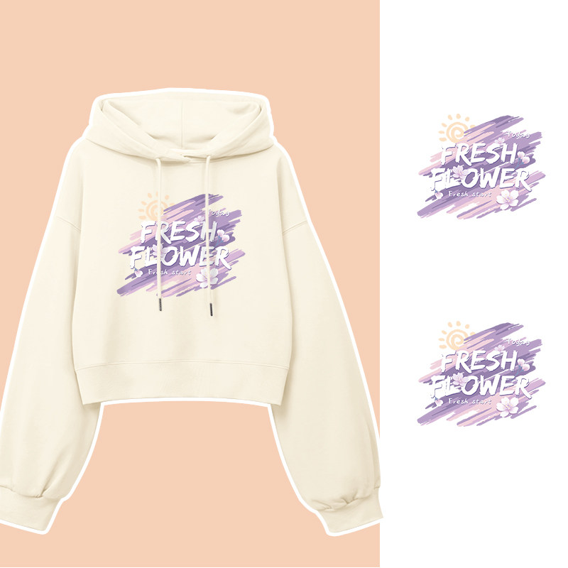 KHV真维斯紫色加绒卫衣女连帽短款外套秋冬季2025新款学生上衣
