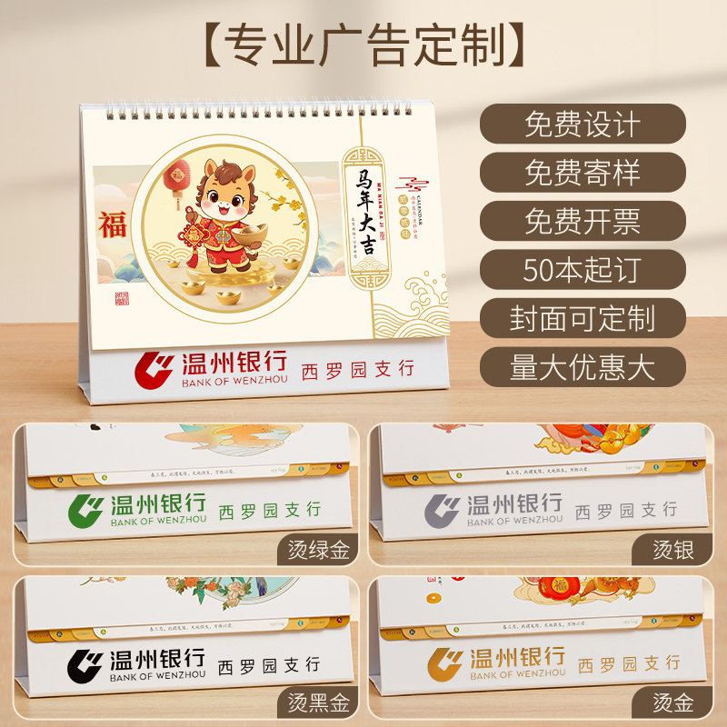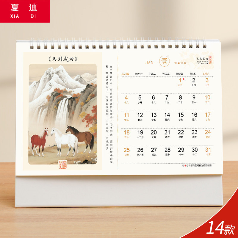 2026马年台历中国风艺术日历制作公司企业商务广告创意月历定做保险礼品小清新办公桌面摆件赠品烫金印刷定制