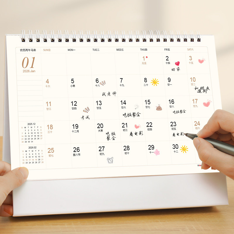 季左2026年韩式台历日历马年新款定制订制小卡月历桌面摆件网红卡通高颜值办公台历卡通可爱