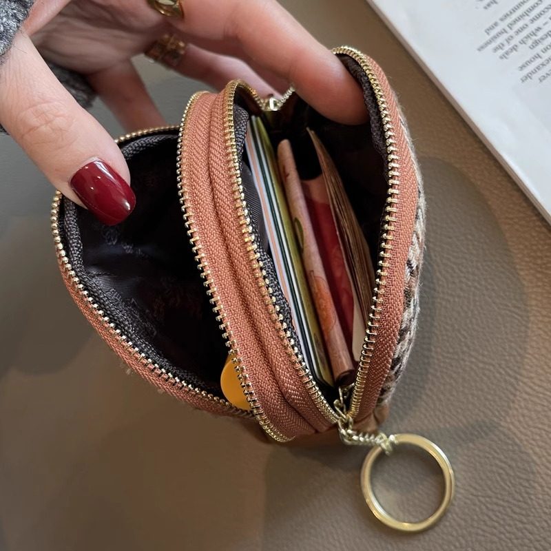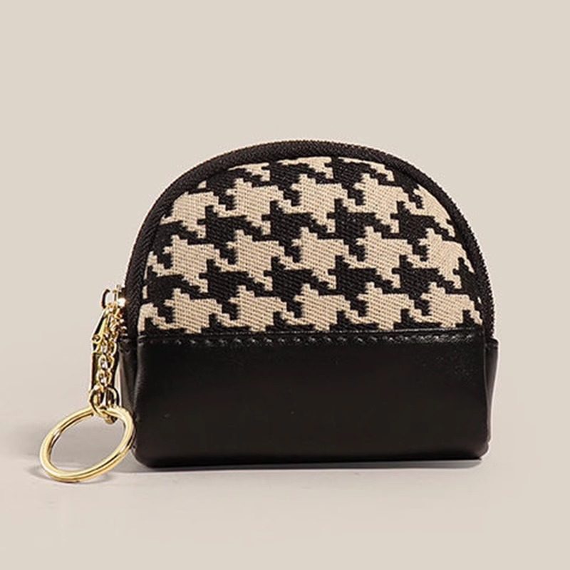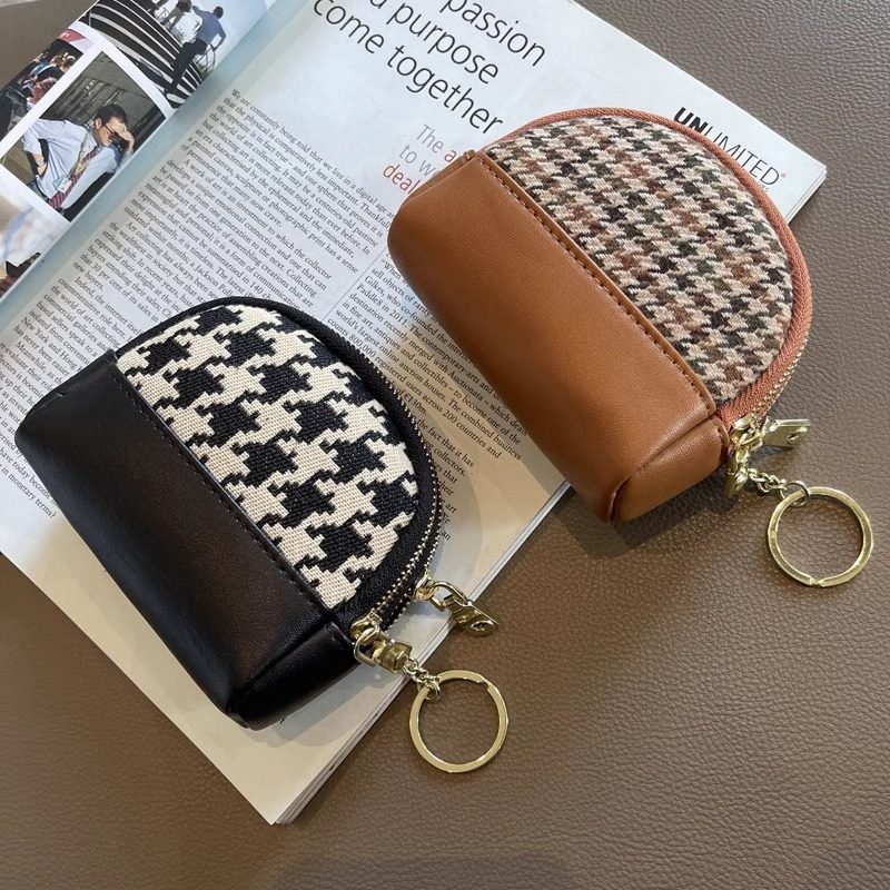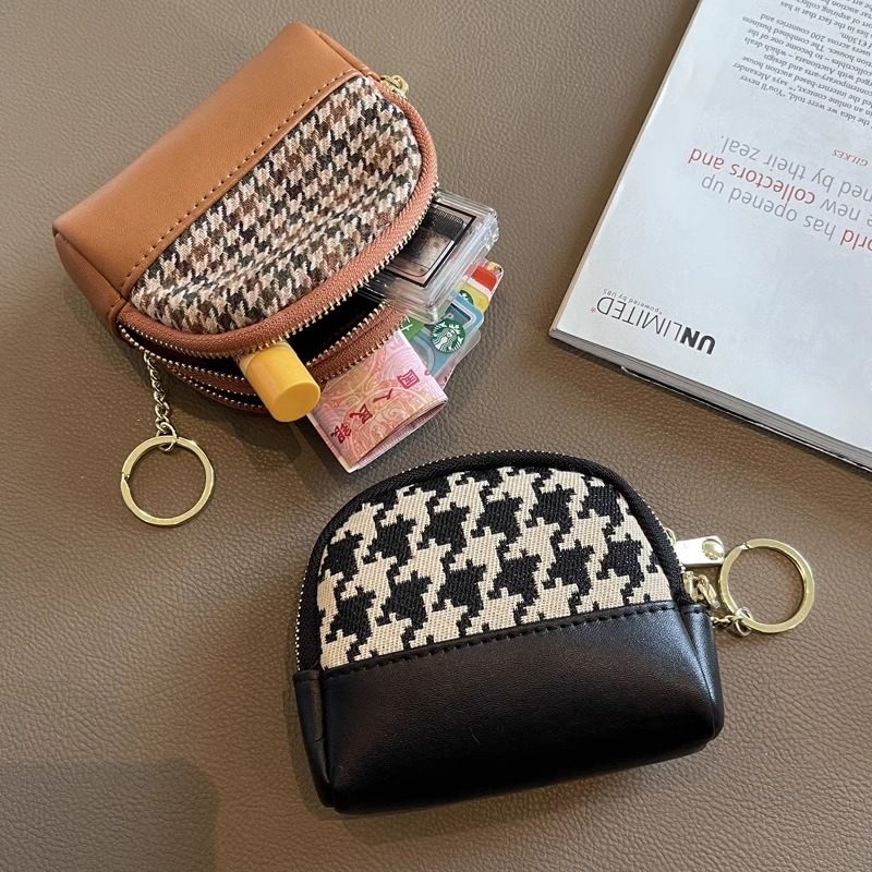 千鸟格零钱包女款钱包精致高档小巧拉链创意钥匙包复古便携收纳包
