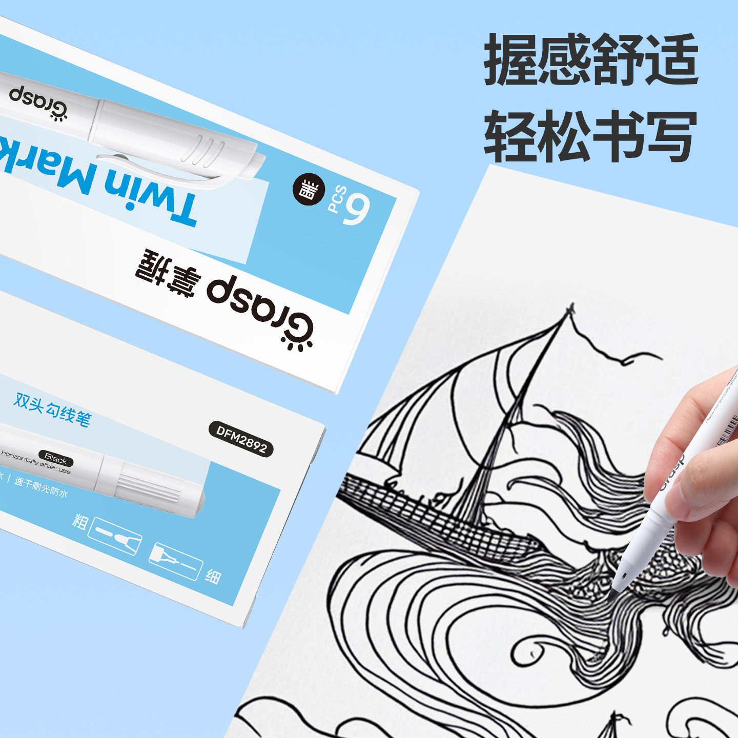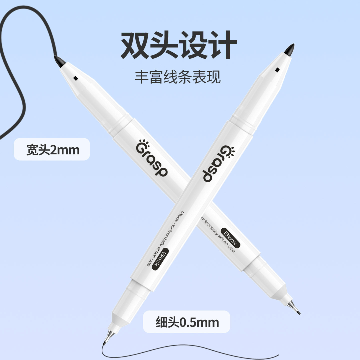 掌握美术专用勾线笔不晕染双头黑色小学生水性笔幼儿园儿童描边绘画笔国画马克描边速干勾边笔粗细两头记号笔