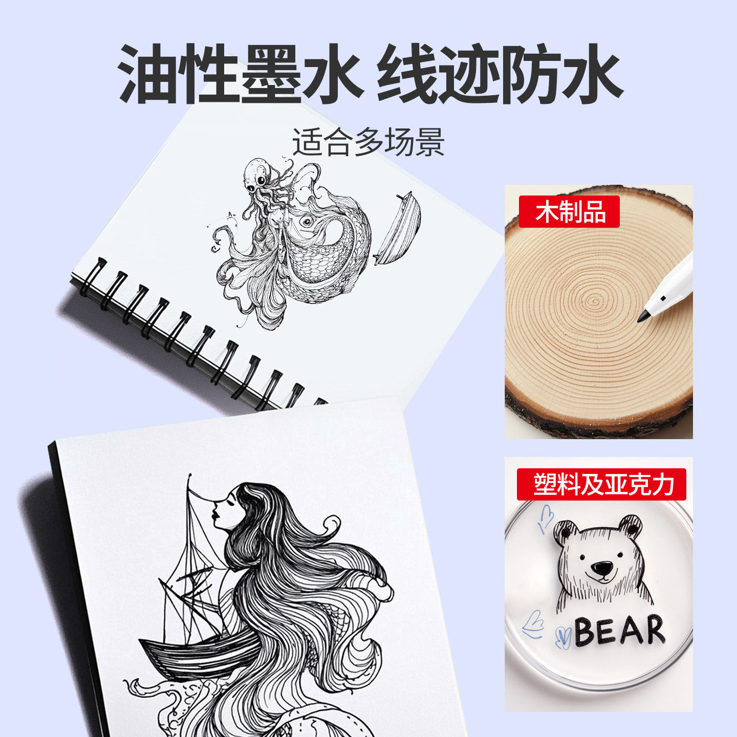 美术专用勾线笔不晕染油画黑色勾线笔小学生专用一年级幼儿园儿童绘画笔水性油性记号笔防水防油不掉色描边笔