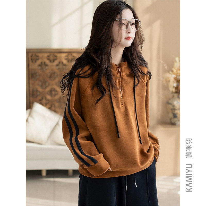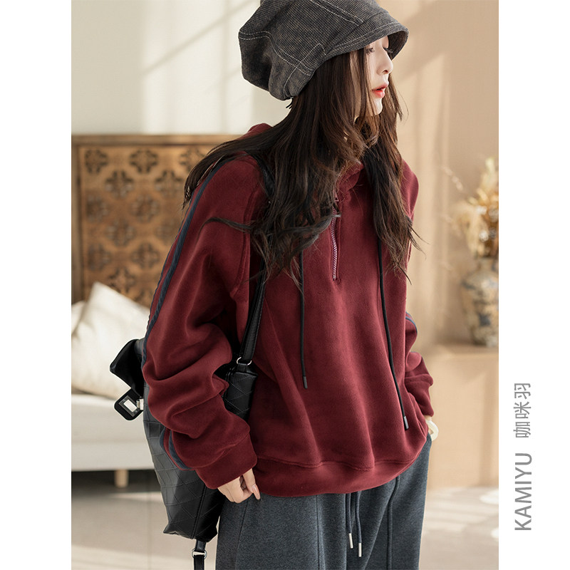 咖咪羽卫衣女秋冬新款加厚女士连帽颗粒绒纯色宽松好看女装外套女