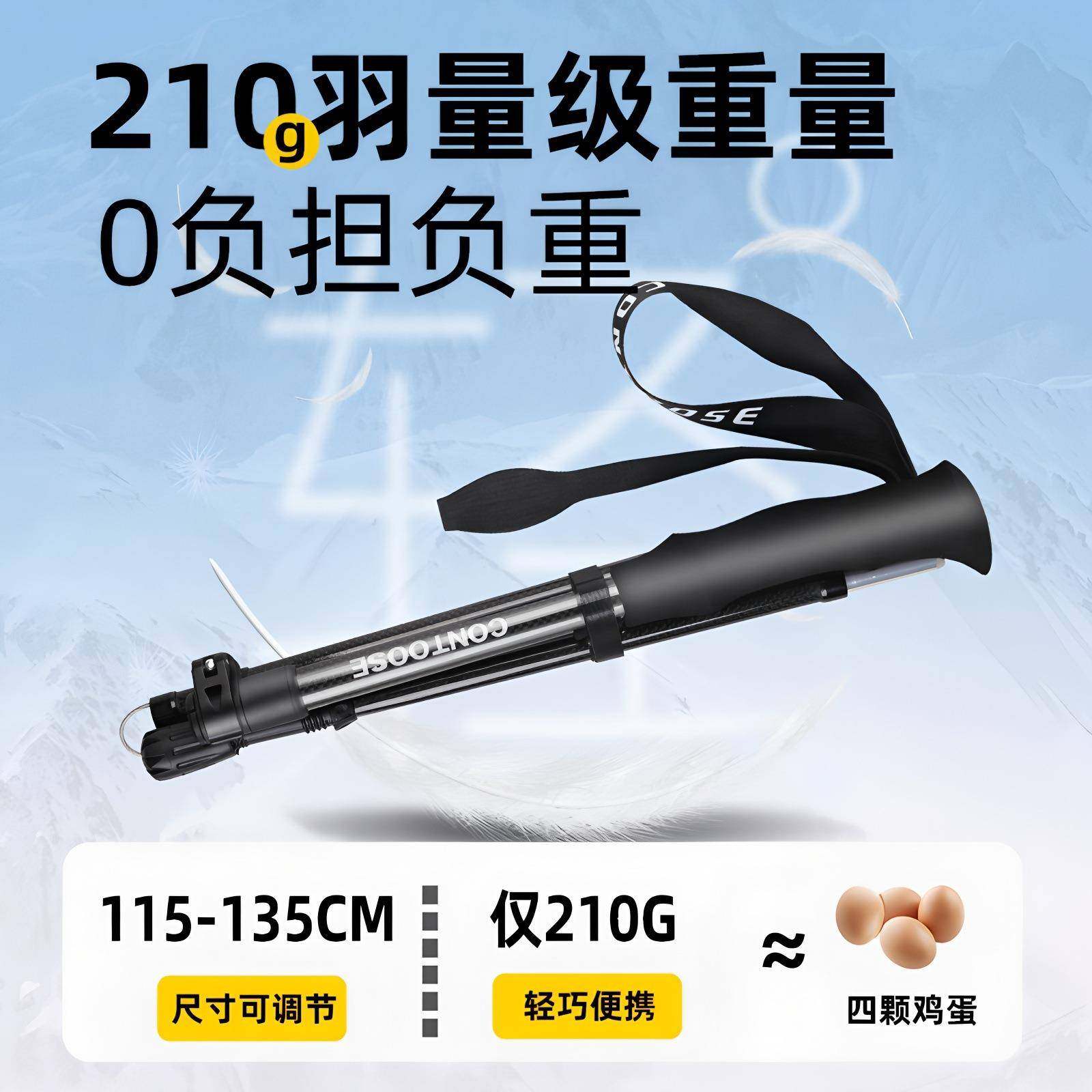 3K碳素纤维登山杖超轻携式手杖户外折叠防滑拐仗多功能徒步杖