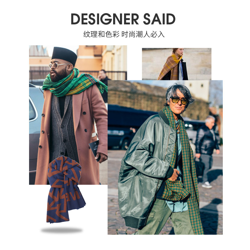 【王俊凯同款】骆驼围巾冬季女新年礼物保暖围脖男针织蓝色围巾