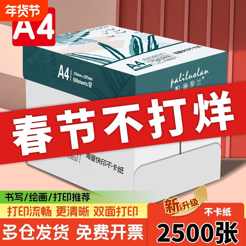 A4复印纸打印纸a4整箱批发70g包邮双面打印学生用考研刷题幼儿园绘画草稿纸纯木浆80g加厚实惠装办公用纸白纸