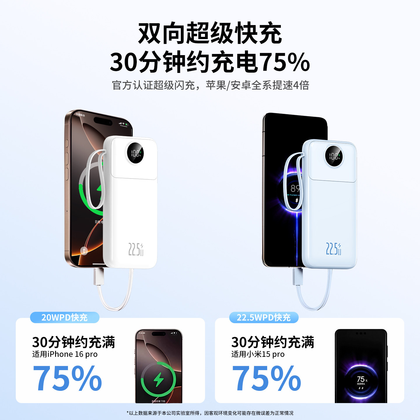 倍思20000毫安充电宝官方旗舰店正品2025新款快充超薄小巧便携自带线大容量移动电源便携适用小米苹果16专用