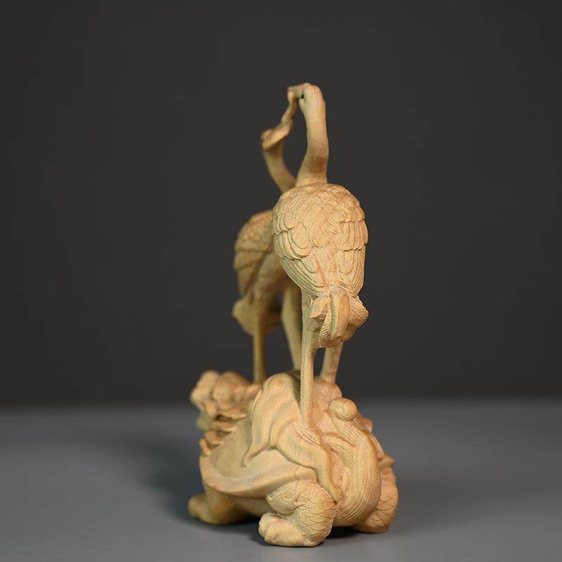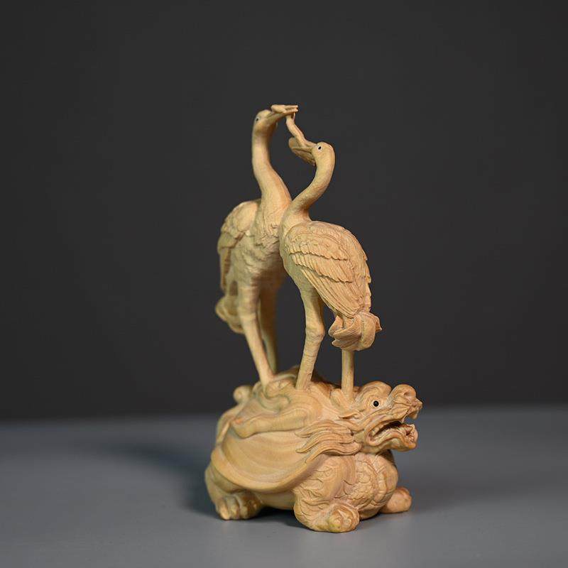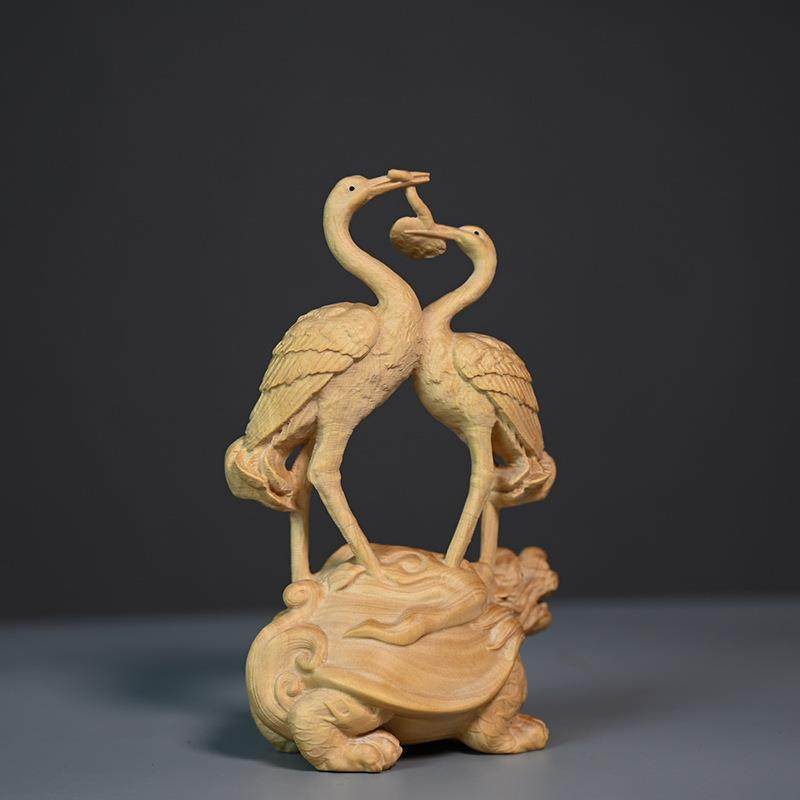 小叶黄杨木雕刻龟鹤遐?摆件家居玄关摆件办公桌面摆件木质工艺品
