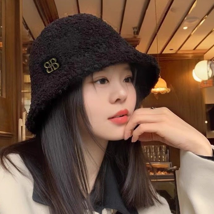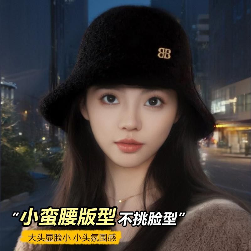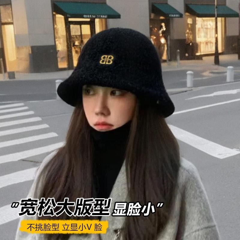 羊羔绒渔夫帽女秋冬季韩版保暖显脸小盆帽大头围时尚毛绒水桶帽子