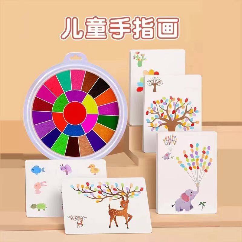 可水洗儿童创意手指画安全环保彩色印泥盘亲子互动活动签到印盘
