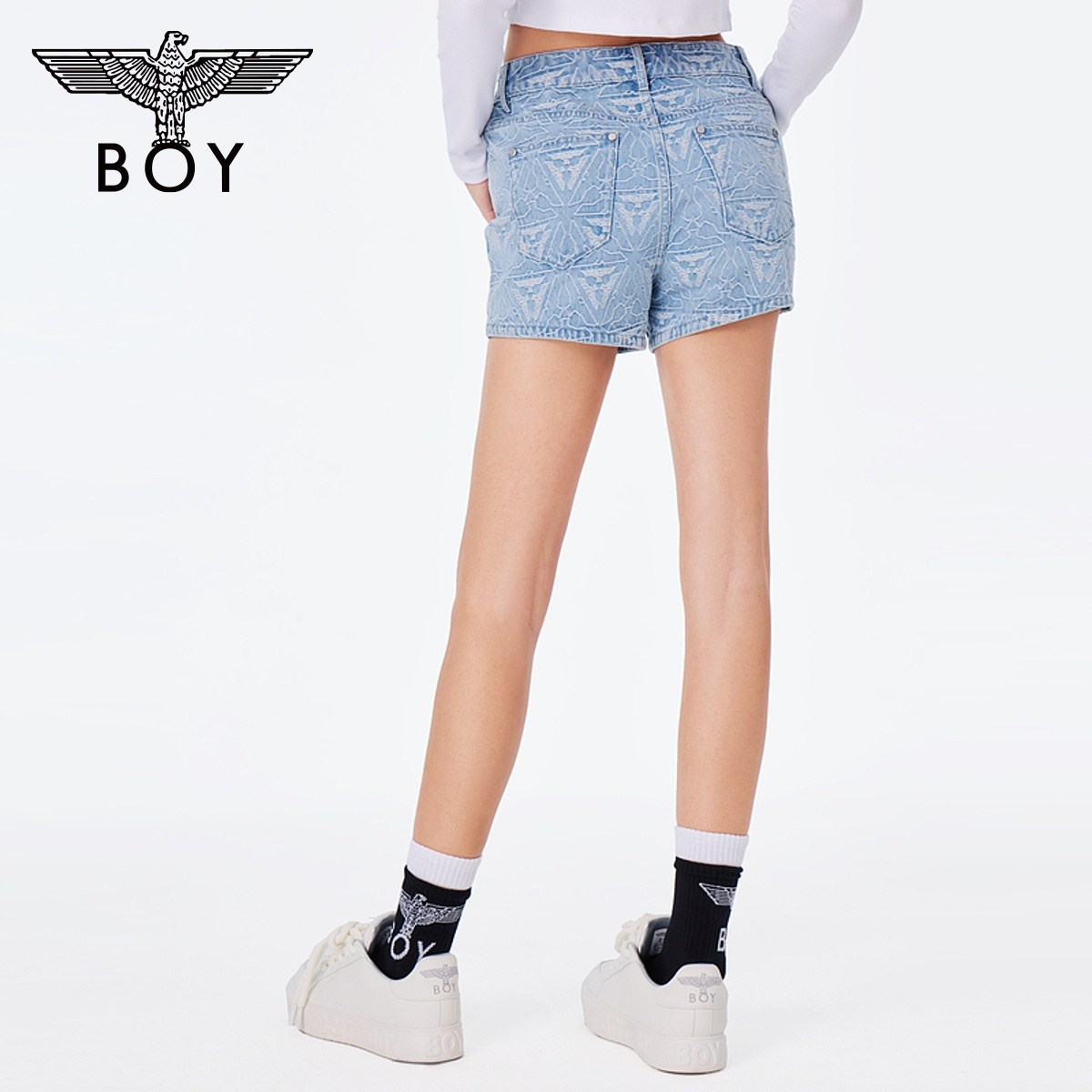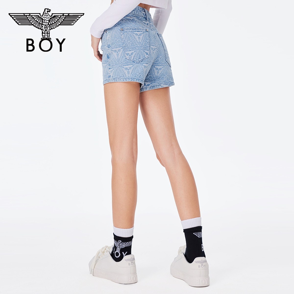BOYLONDON夏季牛仔短裤三鹰标立体提花设计休闲裤W53002