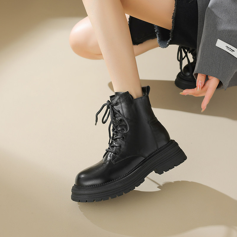 增高厚底复古女款2025新款小众方头松糕厚底jk短靴小个子马丁靴