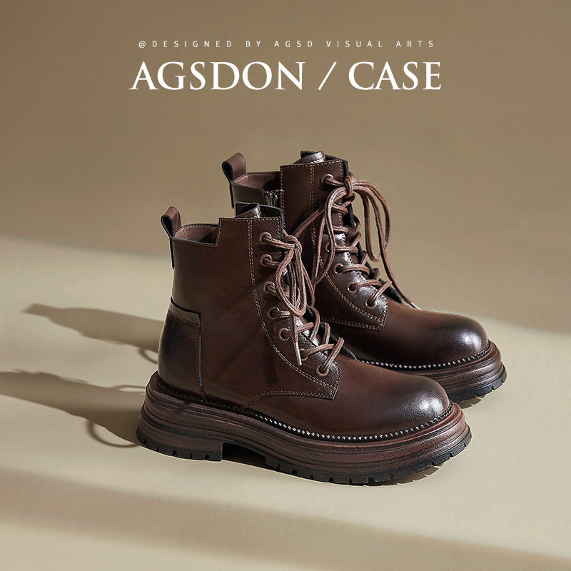 奥古狮登马丁靴女2025新款冬季厚底真皮英伦风短靴中筒靴黑色加绒