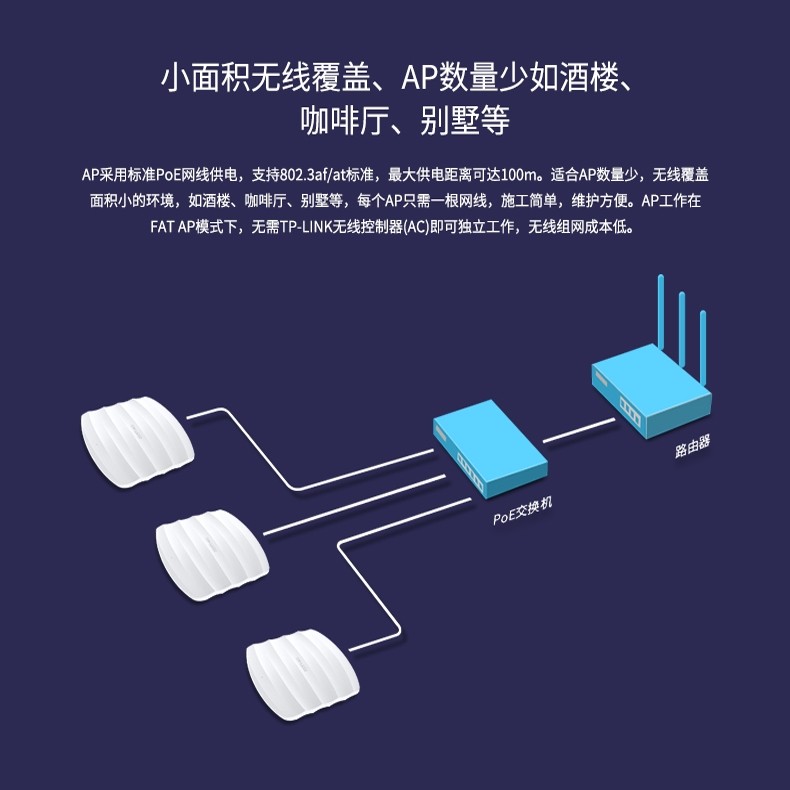 普联TP-LINK 无线AP吸顶式wifi室内路由器酒店宾馆全覆盖工程ap管理网络POE