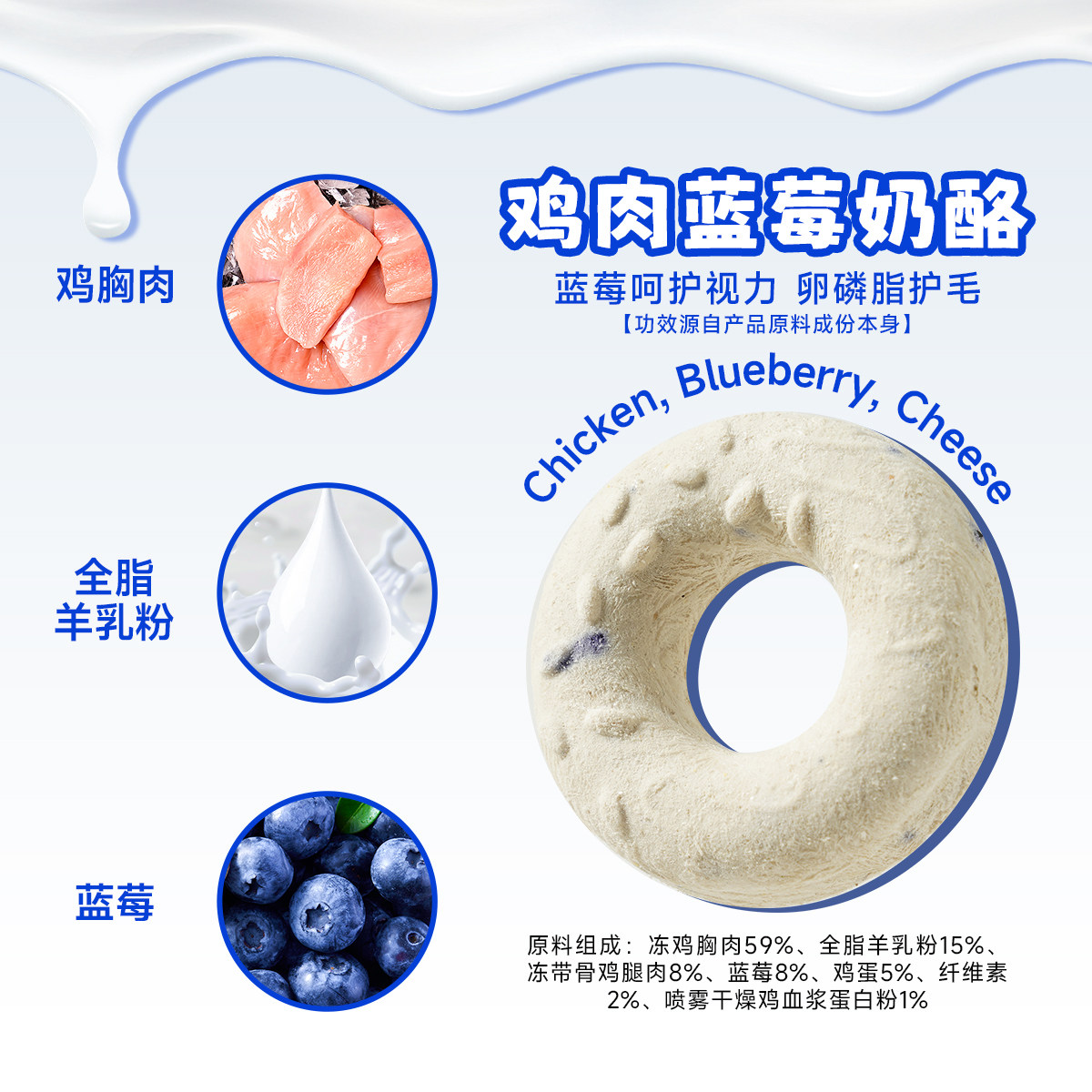 迪迪妈冻干猫咪零食甜甜圈生骨肉蔓越莓羊奶奶酪呵护泌尿猫狗零食