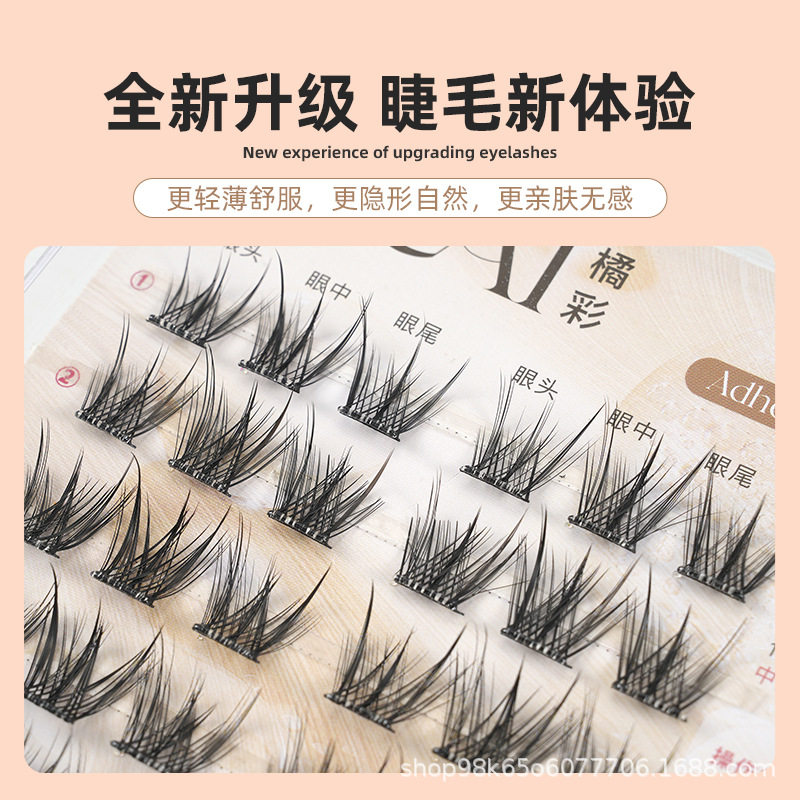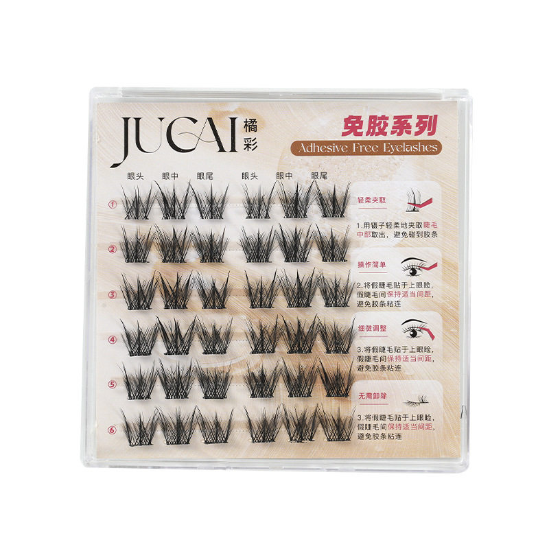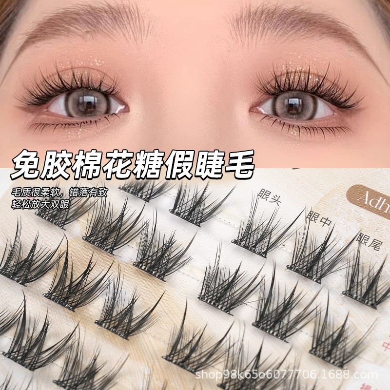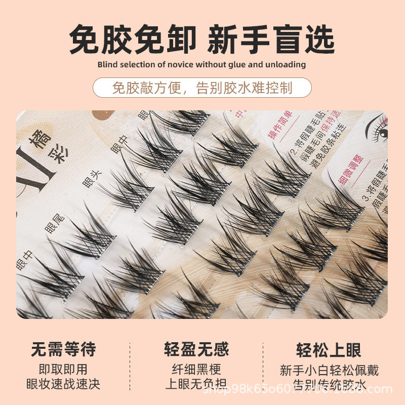 免胶棉花糖假睫毛中式狐系苏妲己斜飞睫毛跨境批发6小排装假睫毛