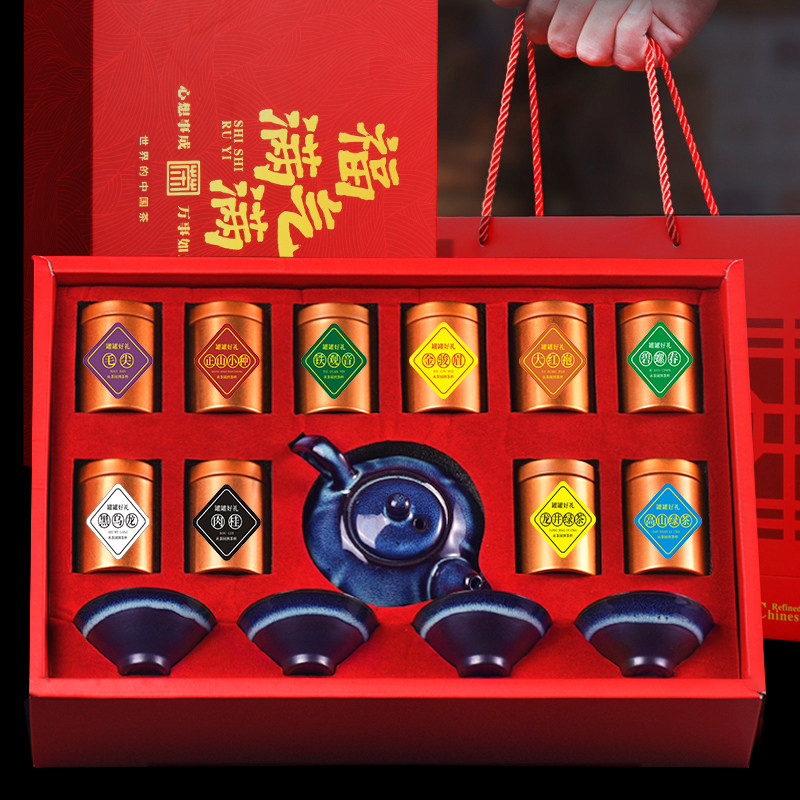 十大茗茶毛尖茶铁观音碧螺春绿茶小种红茶高档礼盒年货送礼长辈