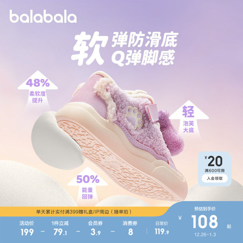 巴拉巴拉童鞋儿童板鞋可爱动物毛绒鞋子男童女童潮流秋冬新休闲鞋