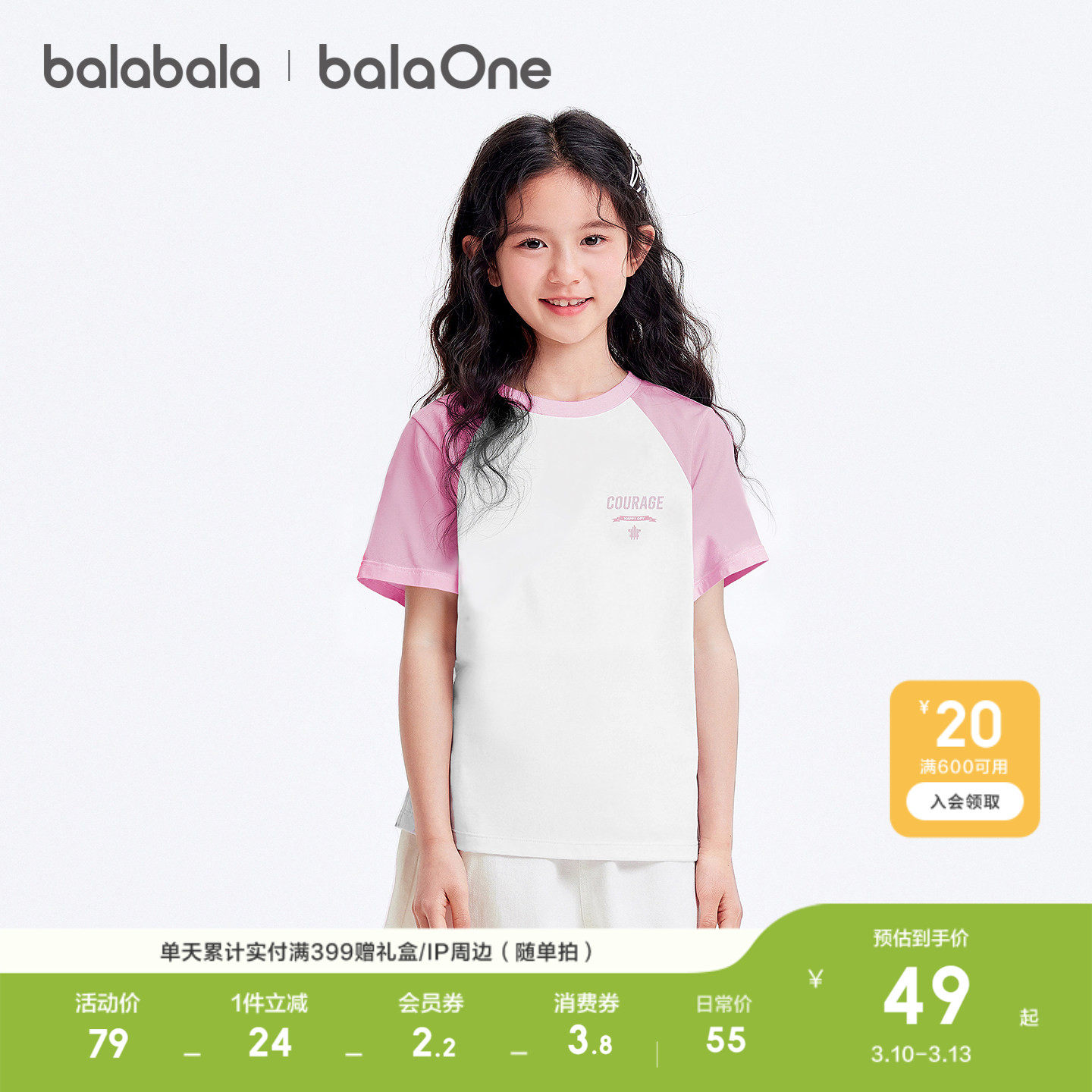 巴拉巴拉童装儿童短袖t恤男女童2026夏季新款速干上衣插肩袖拼色t