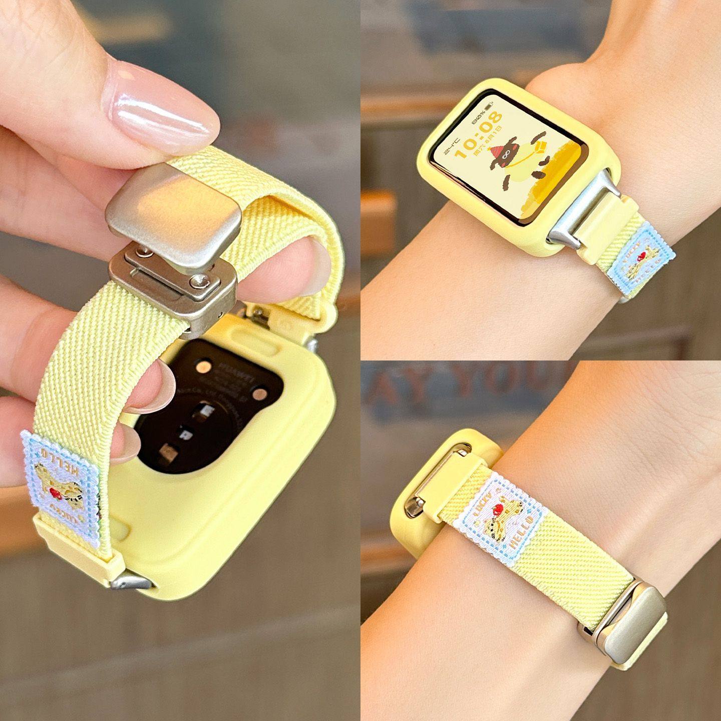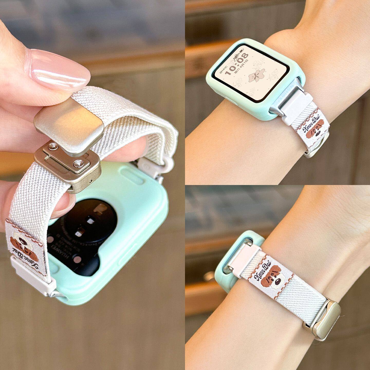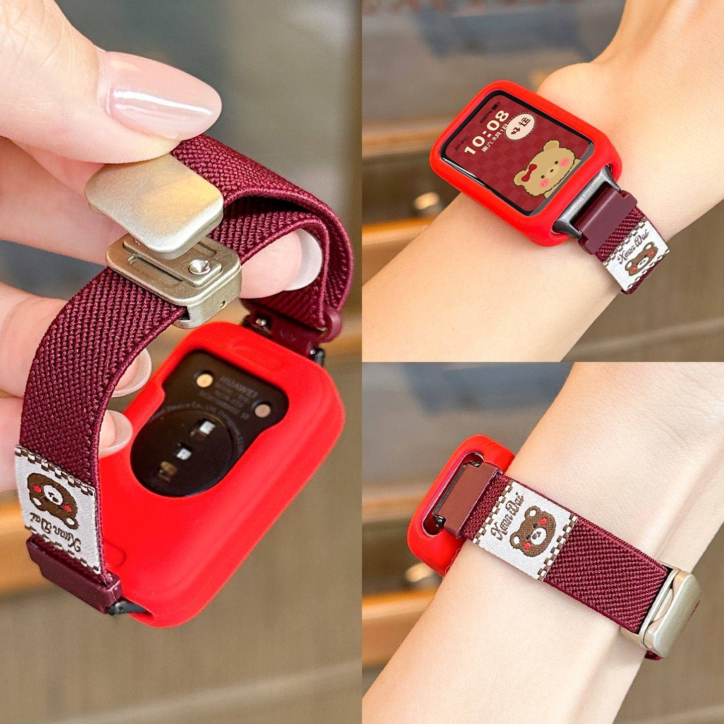 适用华为手环10表带多巴胺9编织尼龙小狗磁吸智能保护套运动高级感手环7NFC版通用男女生透气8荣耀手环10腕带