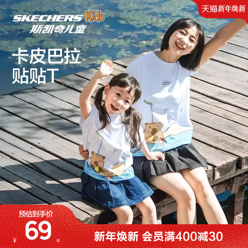 Skechers斯凯奇儿童夏季卡皮巴拉贴贴T亲子装短袖男女童舒适上衣