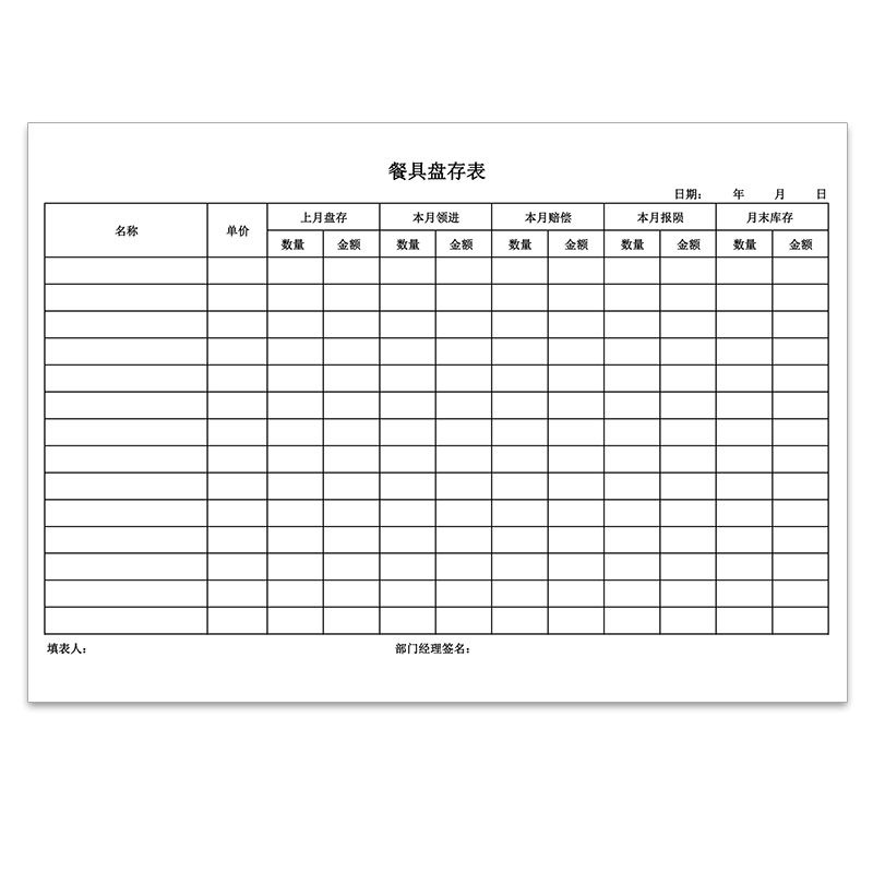 餐具盘存表餐饮行业餐具库存记录表出入库登记本餐具损耗明细表