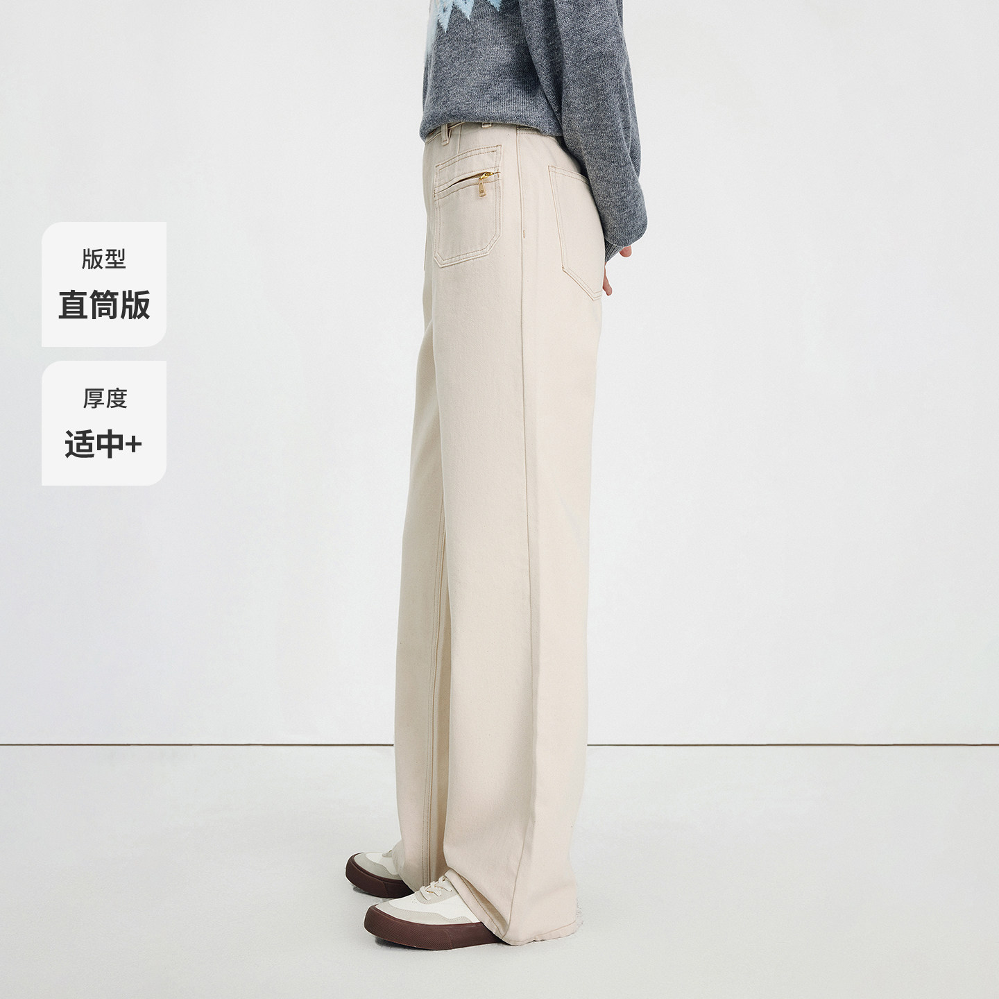森柔牛仔|森马阔腿牛仔裤女2025秋冬白色牛仔裤简约女士高腰裤子