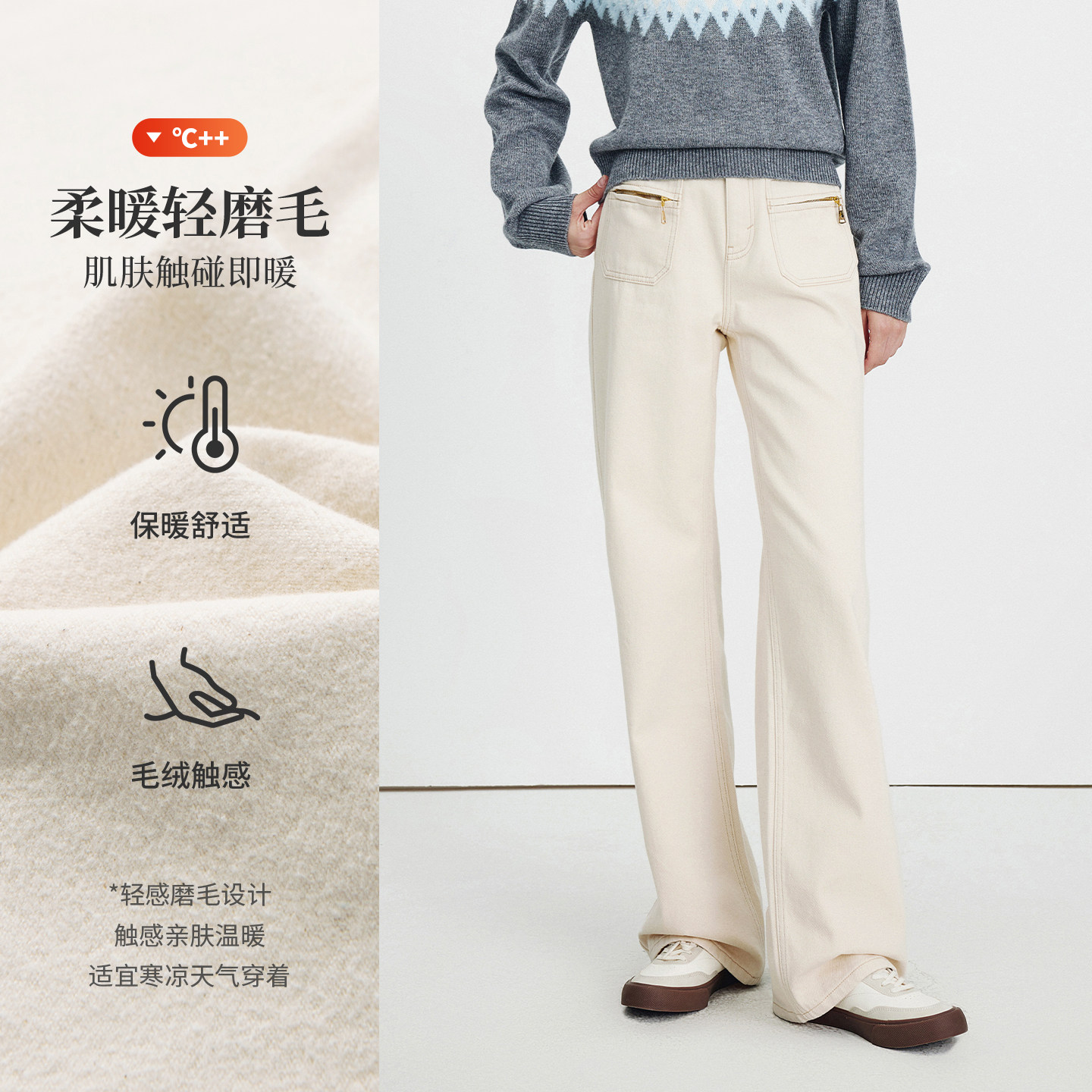 森柔|森马牛仔裤女冬季加绒保暖宽松喇叭裤弹力长裤2025新款港风