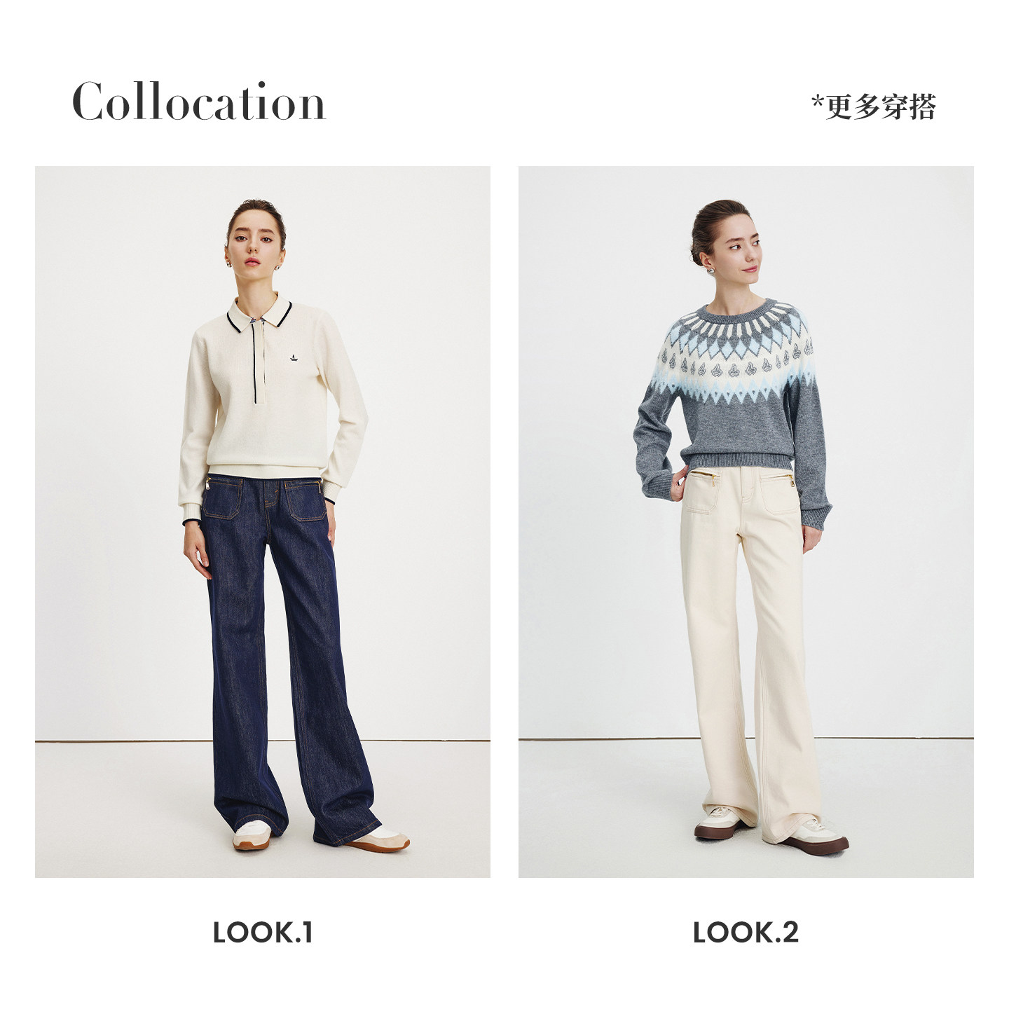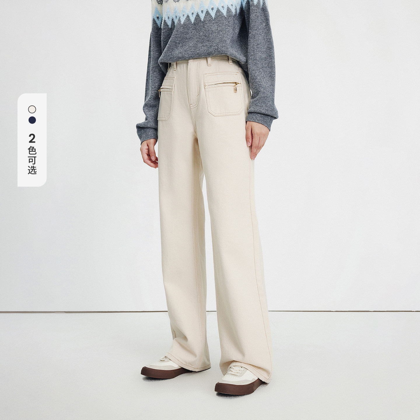 Navigare意大利小帆船磨毛牛仔裤女2025秋季新款复古通勤直筒长裤