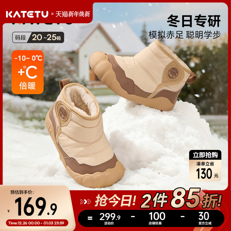 卡特兔宝宝学步鞋2025冬季赤足训练鞋高帮防水防滑保暖儿童棉鞋