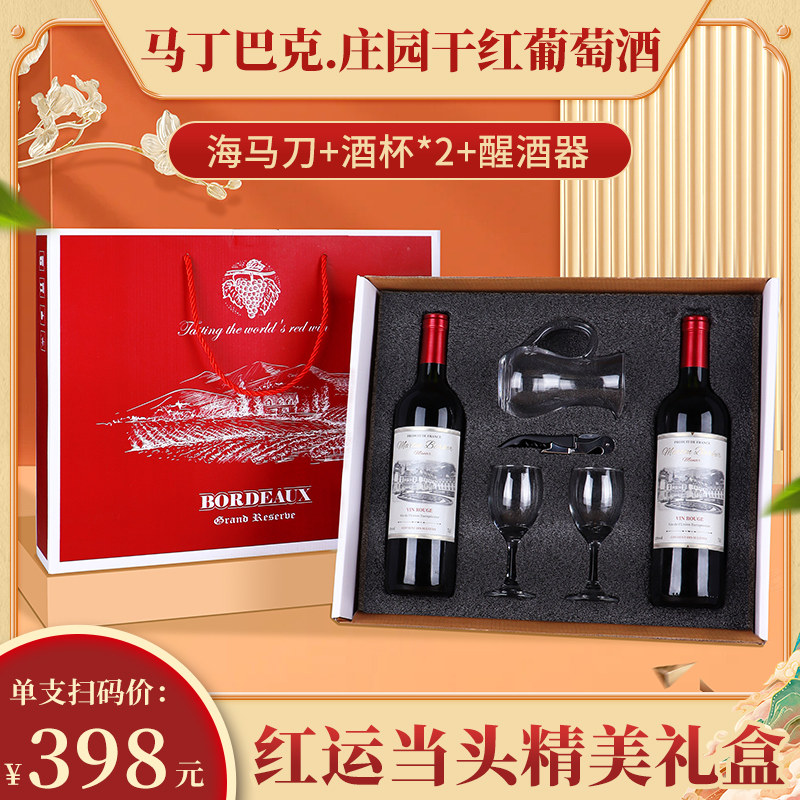 进口红酒双支礼盒装干红葡萄酒高档双支礼盒赤霞珠送礼批发旗舰店