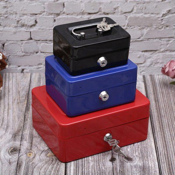 胜狮小保险箱钥匙密码储物箱保险柜家用存钱罐带锁铁盒收纳盒桌面