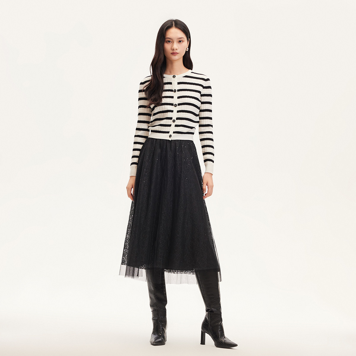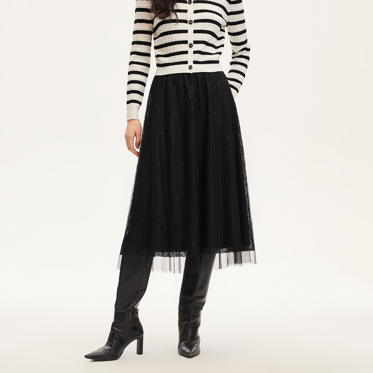 Vero Moda奥莱半身裙秋冬新款网纱蕾丝亮片松紧腰仙女长裙流行